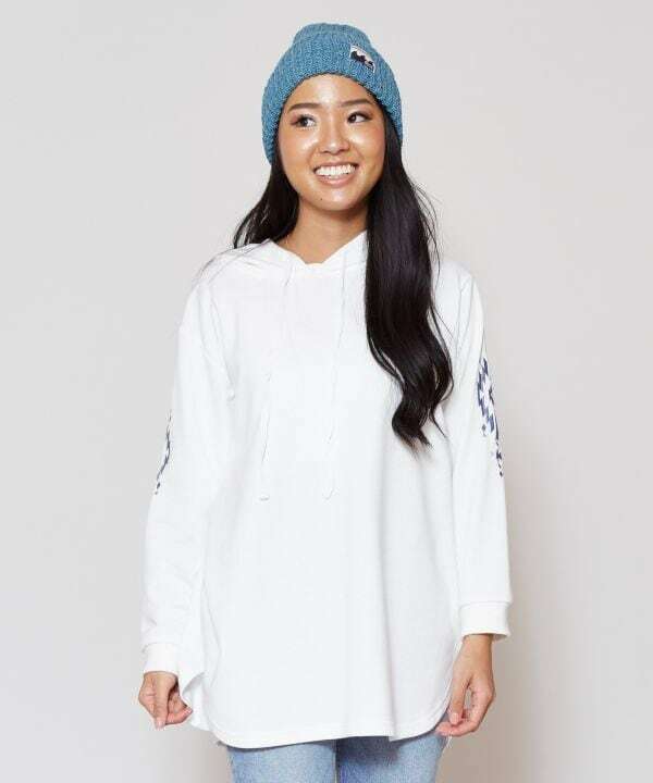 ピリアロハフードTOP【ホワイト】フード付きパーカースウェットデニムと抜群シンプルコーデレディースファッションオルテガ刺繍ピリアロフード送料無料
