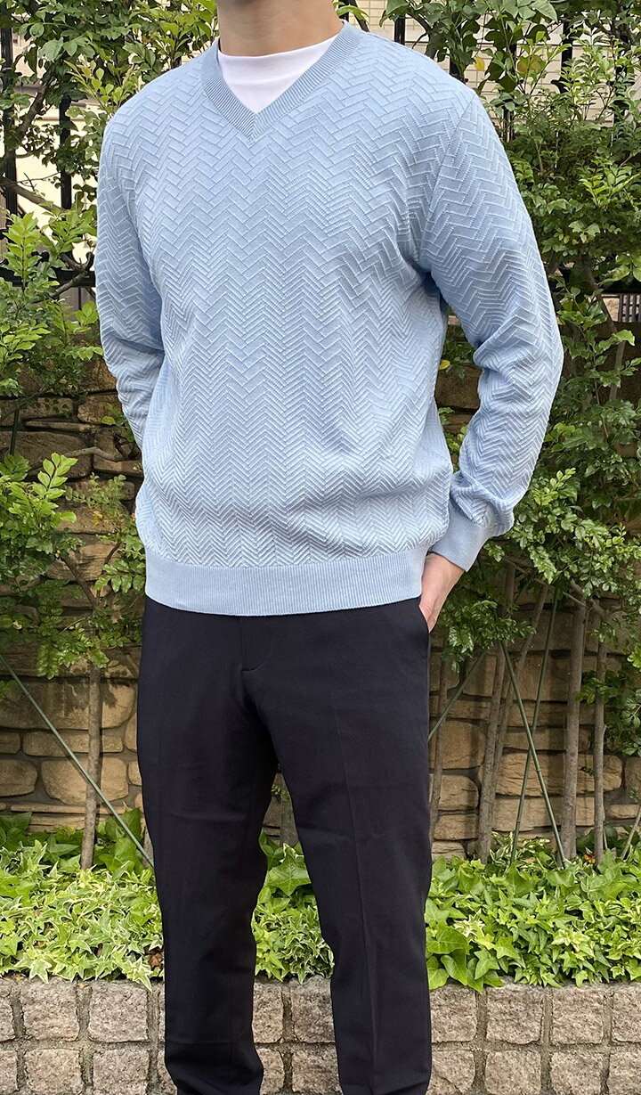 日本製《送料無料》1897年創業アルファー【ALPHA】メンズ・綿 Vネックセーター 春夏/ギフト
