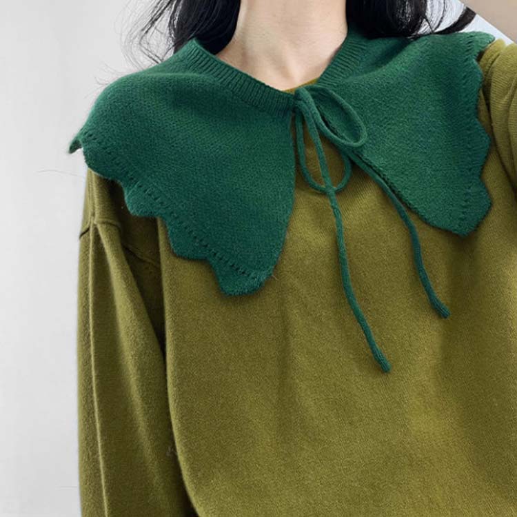 送料無料 フェイクカラー ニット レディース 付け襟 つけえり フリル 大きめ リボン 白 付け衿 重ね着風 レイヤード シンプル 清楚 可愛い つけ襟