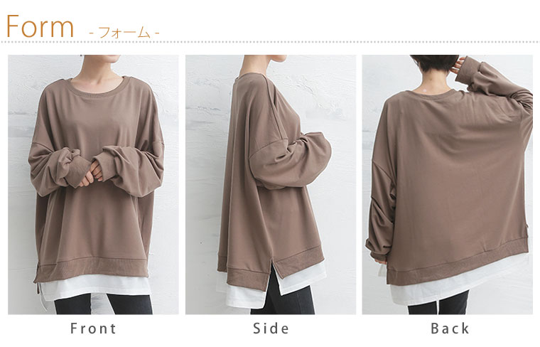 【限定!全品P5倍9/6 13:59まで】 大きいサイズ レディース トップス | ゆるっと楽ちん!着ぶくれ回避の 重ね着風 ミニ裏毛 プルオーバー _ オリジナル LL 3L 4L 5L 6L 7L 8L 9L 10L 秋 秋物 秋冬 ぽっちゃり ゆったり お腹 胸周り 腰周り かわいい おしゃれ [431970]