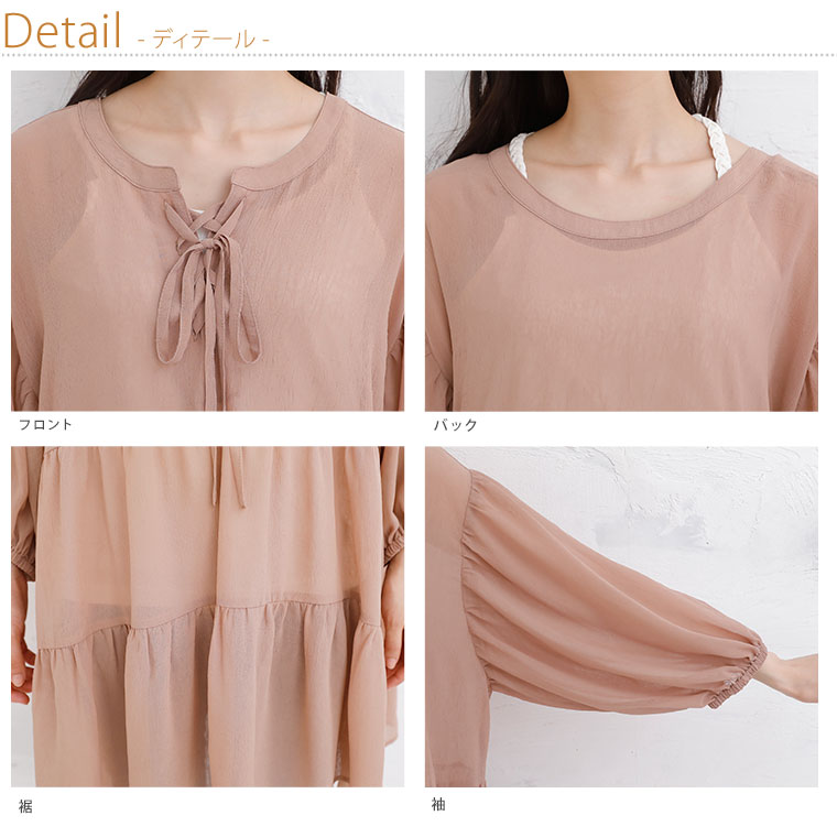 【期間限定クーポン配布】 大きいサイズ レディース トップス | 楊柳 シフォン レースアップ 2WAY チュニック _ シャツ ブラウス LL 3L 4L 夏物 夏服 夏用 ぽっちゃり ゆったり かわいい おしゃれ カジュアル プラスサイズ [TG35323LL-1/TG35323LL-2/TG35323LL-3]
