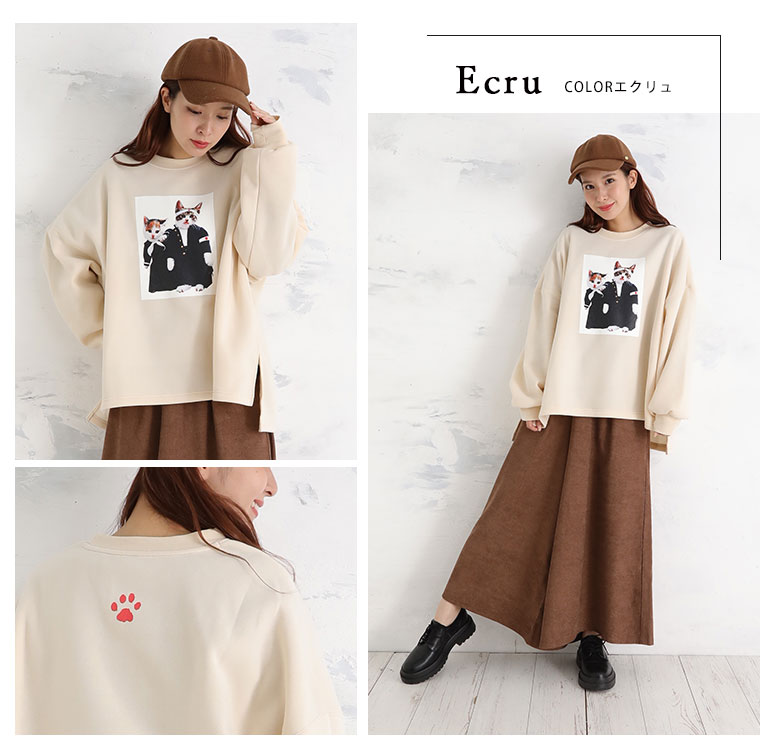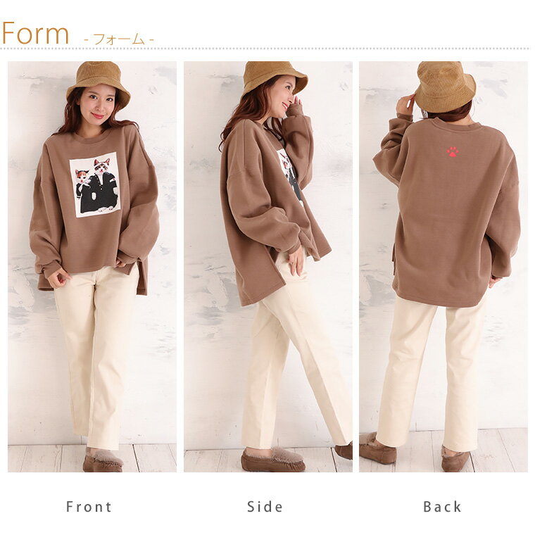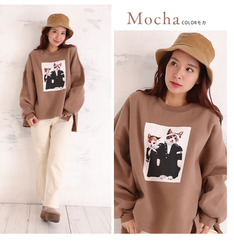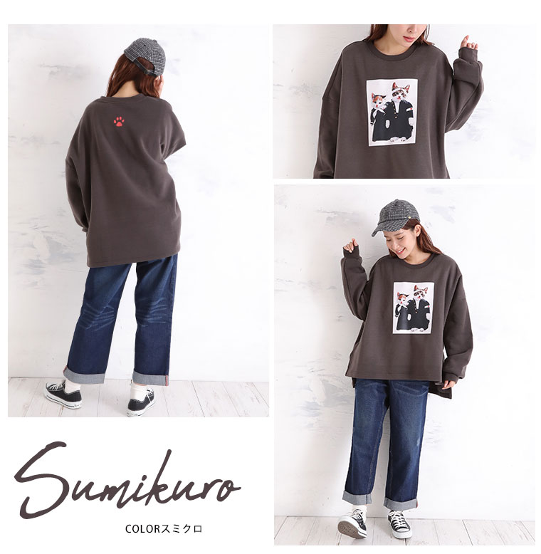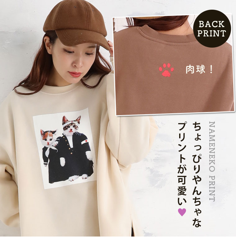大きいサイズ レディース トップス | 【なめ猫コラボ】裏起毛 スウェット プルオーバー (前プリント) _ オリジナル トレーナー ジャージ LL 3L 4L 5L 6L 冬 冬物 冬服 ぽっちゃり ゆったり かわいい おしゃれ カジュアル プラスサイズ [494003HN]