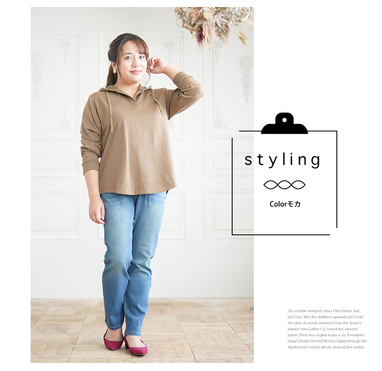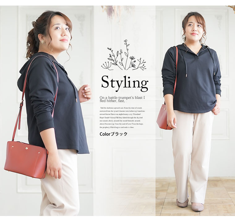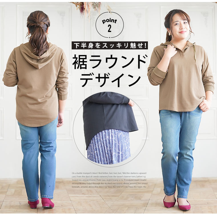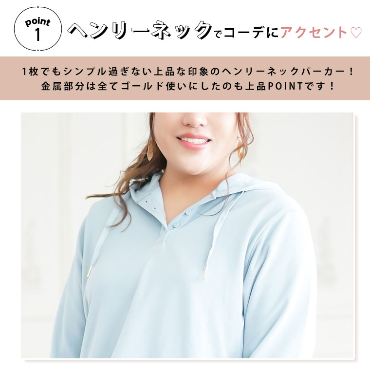 【4h限定全品20%オフクーポン】 大きいサイズ レディース トップス | 【hinaさんコラボ】ヘンリーネック スウェット パーカー _ オリジナル トップス ジャージ LL 3L 4L 5L 6L 冬 冬物 冬服 ぽっちゃり ゆったり カジュアル プラスサイズ ナチュラル ガーリー [432302]