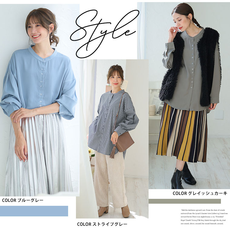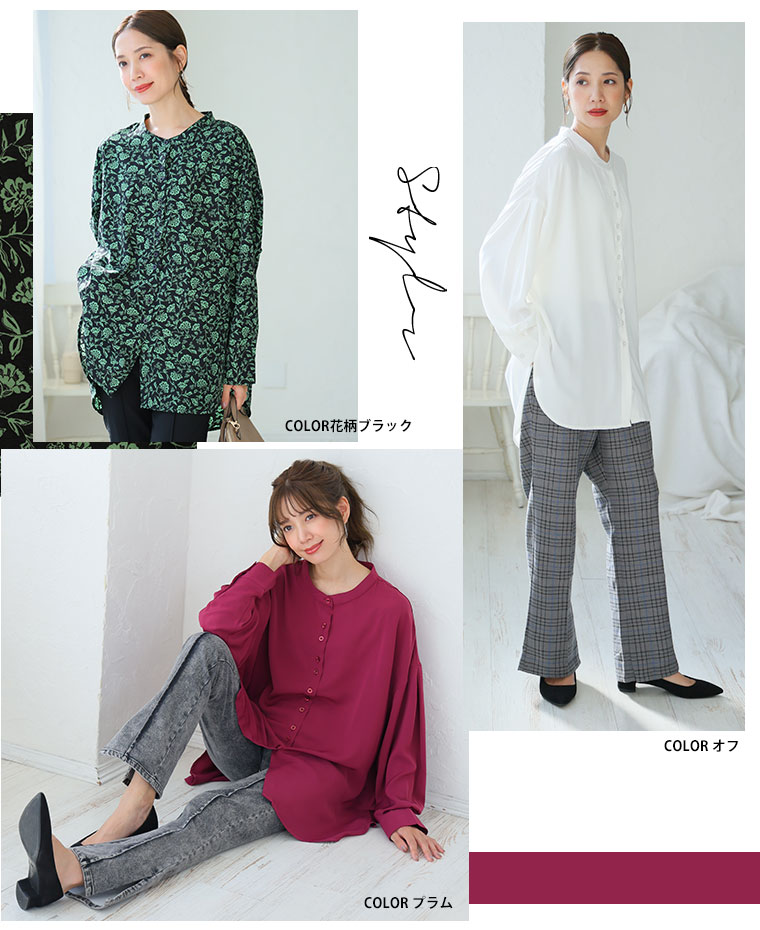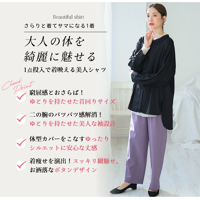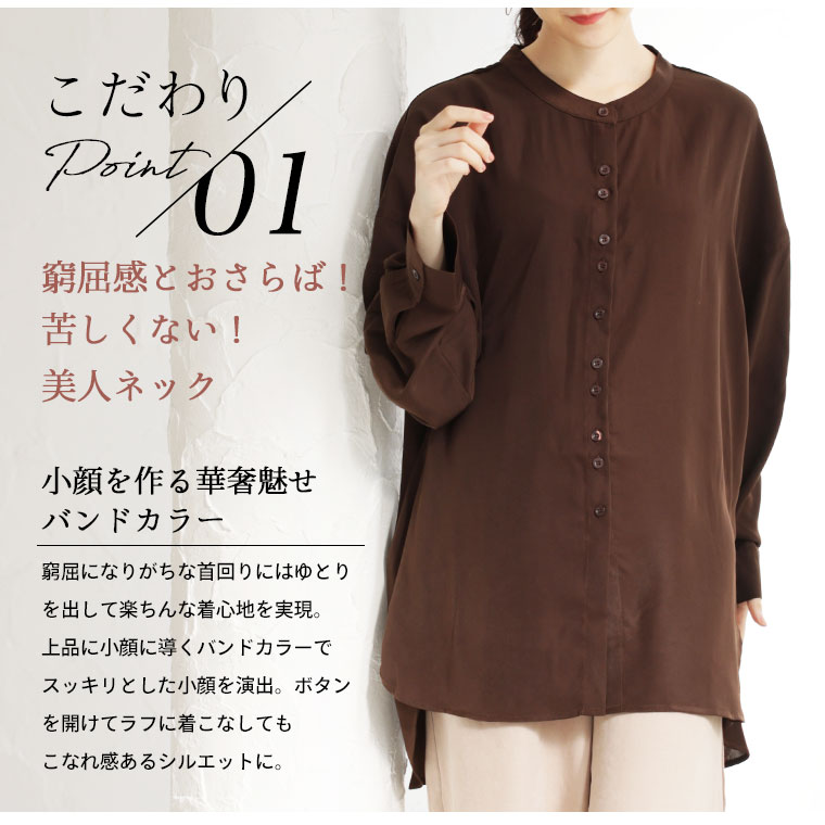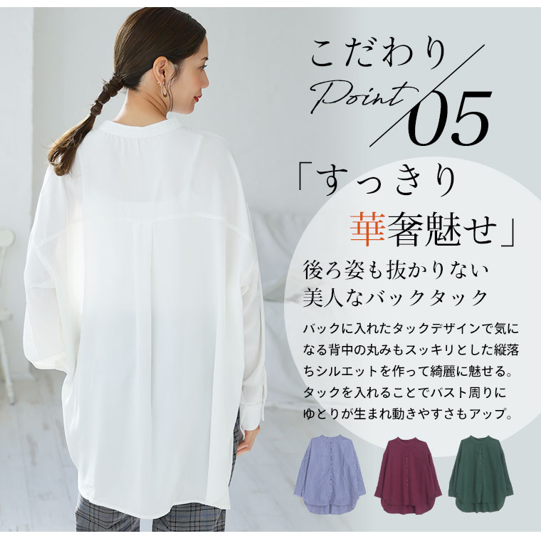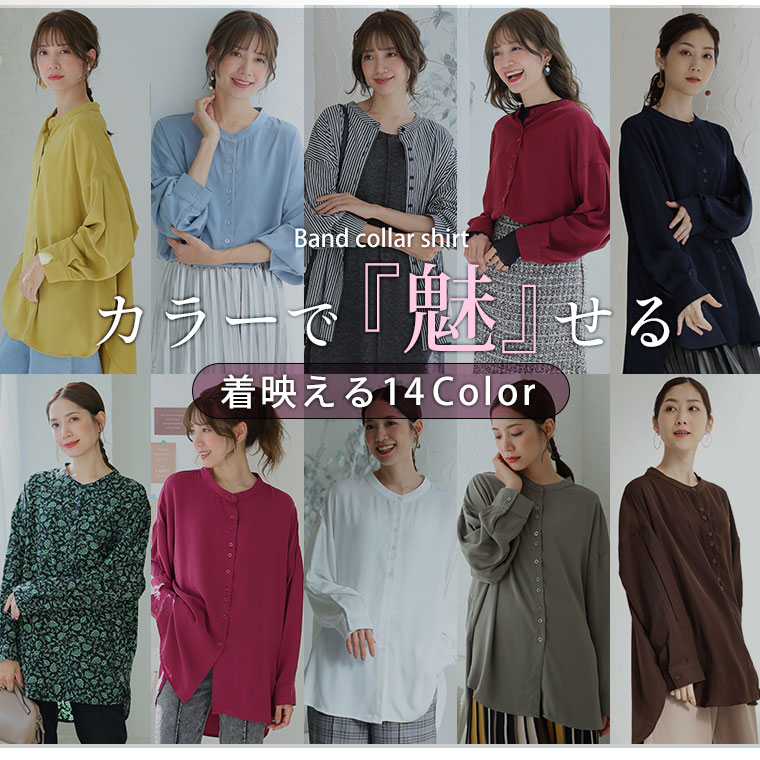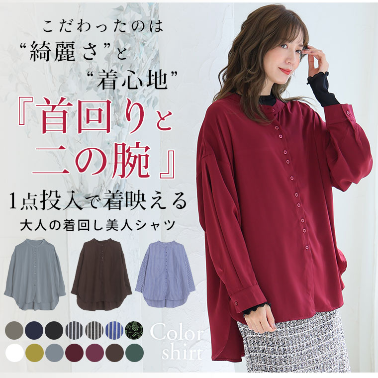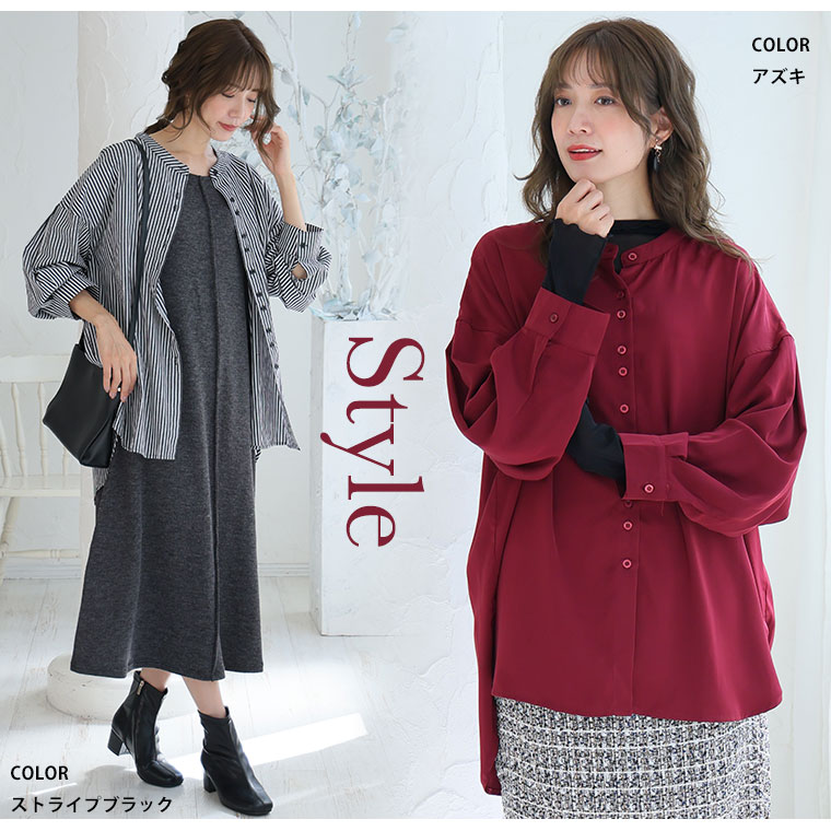 【限定!15%OFFクーポン配布】 大きいサイズ レディース シャツ | 新色追加!! ボタンがお洒落!! 首元苦しくない 大人のこなれ 着回し バンドカラーシャツ _ オリジナル ブラウス トップス LL 3L 4L 5L 6L 7L 8L 秋 冬 ぽっちゃり ゆったり プラスサイズ [432553]