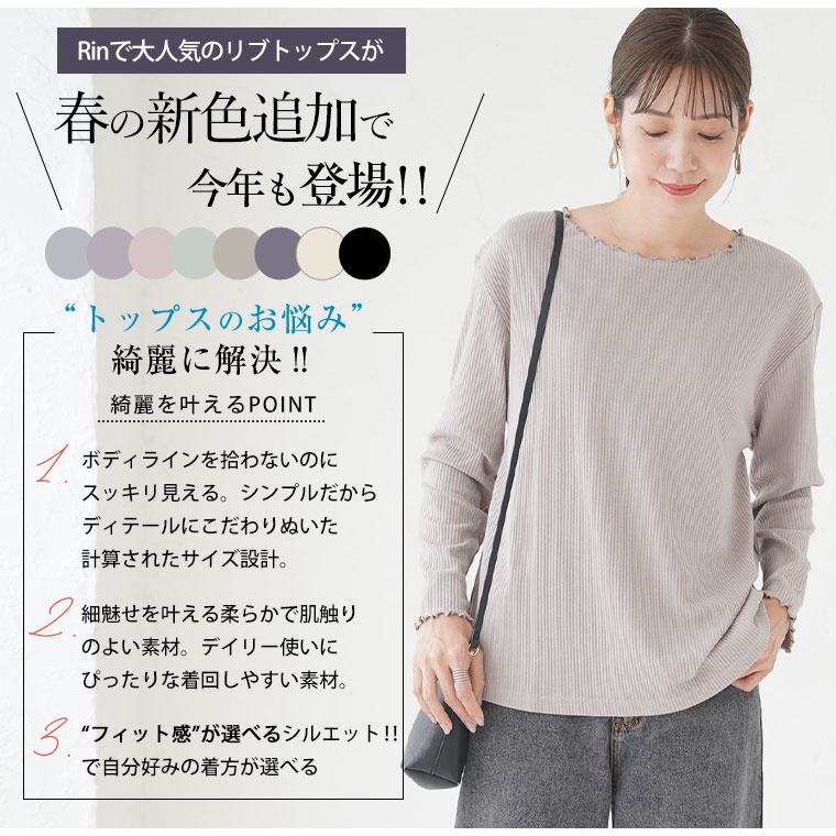 【期間限定クーポン配布】 大きいサイズ レディース トップス | 新色追加!! Rin メロウデザイン シルエットが選べる すっきり リブカットソー トップス _ プルオーバー LL 3L 4L 5L 6L 長袖 春 春物 春服 ぽっちゃり ゆったり プラスサイズ 細魅せ [215123/215124]