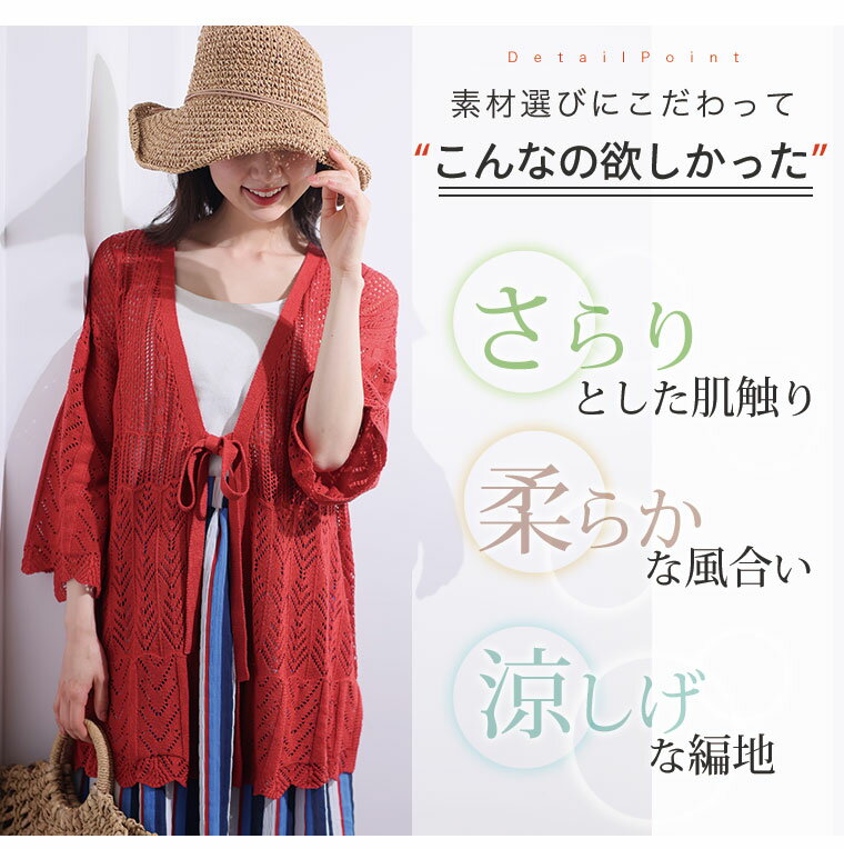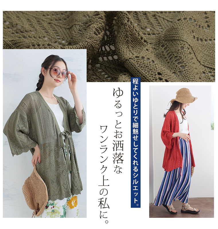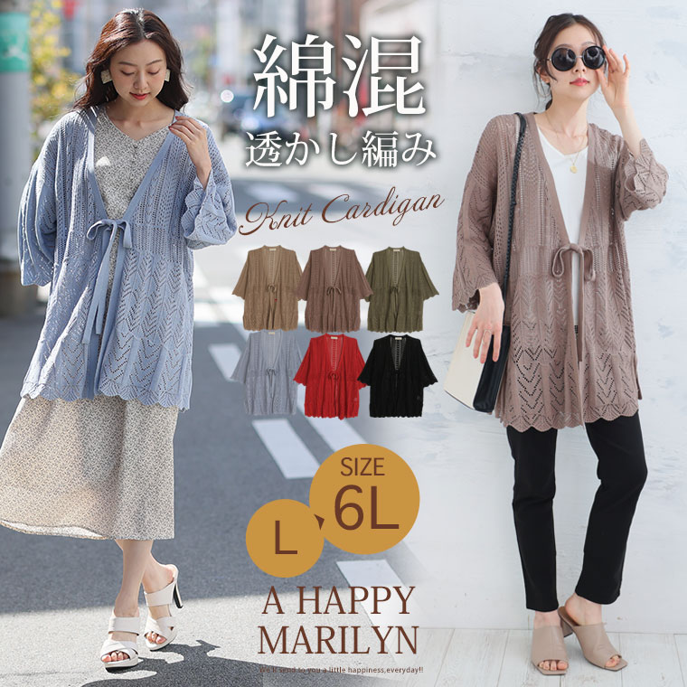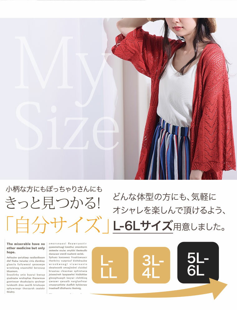 【限定!全品P5倍7/21 13:59まで】 大きいサイズレディース カーディガン | 透かし編み カーデ _ オリジナル トップス カーデ 羽織り LL 3L 4L 5L 6L 夏 夏物 夏服 夏用 ぽっちゃり ゆったり サマーニット ニット 透かし編みニット カジュアル プラスサイズ [473214]