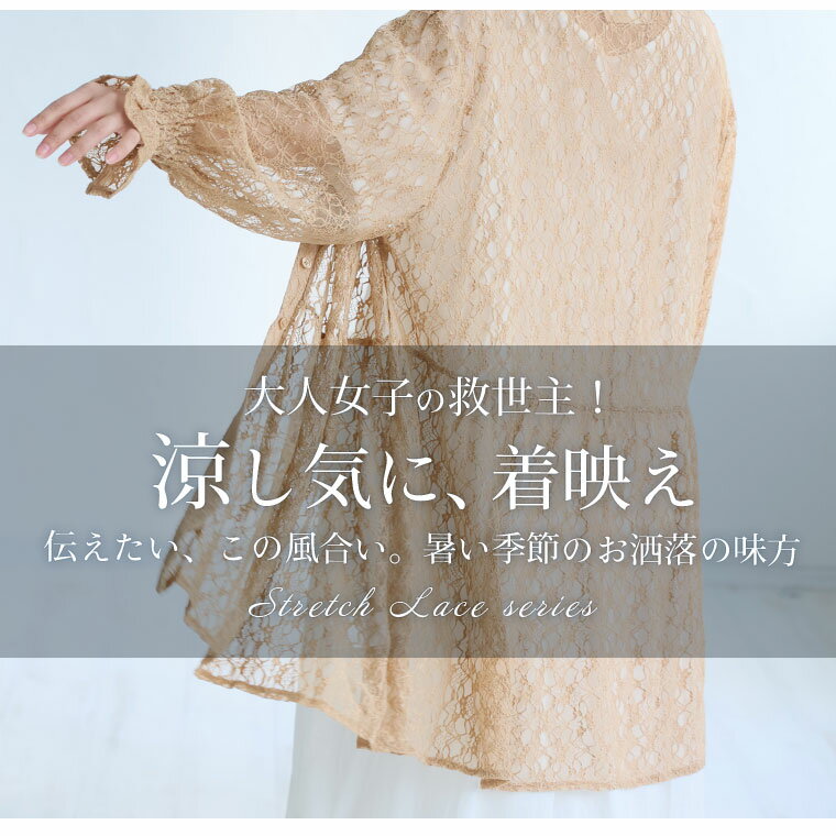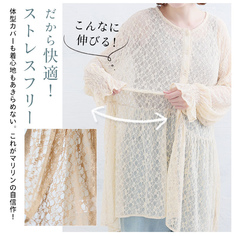 【4h限定全品20%オフクーポン】 大きいサイズレディース トップス | ストレッチレースで楽ちん綺麗シリーズ シャツチュニック _ オリジナル チュニック シャツ LL 3L 4L 5L 6L 夏 ぽっちゃり ゆったり お腹 胸周り 二の腕カバー お尻 腰周り レース ストレッチ [473218]