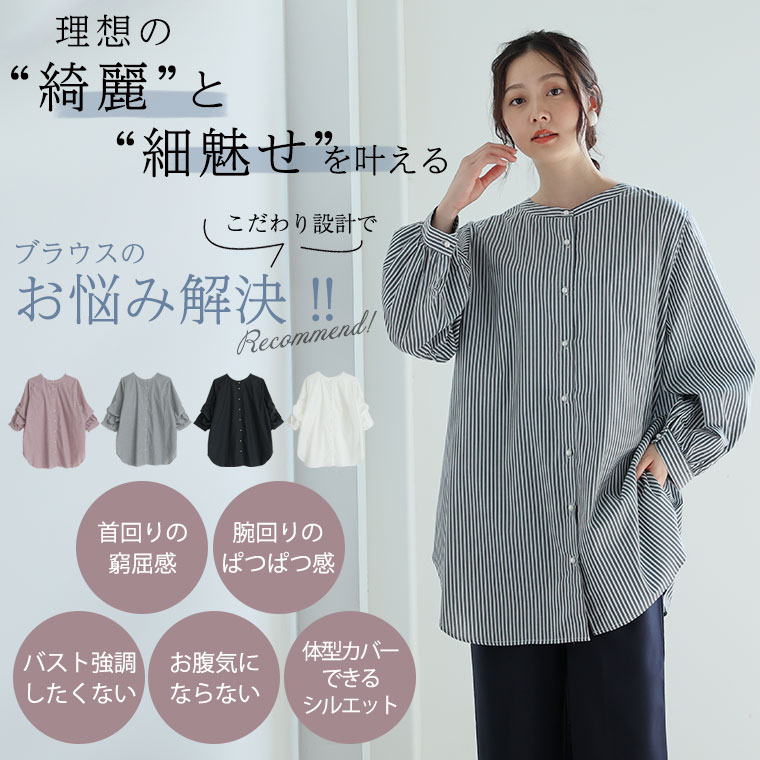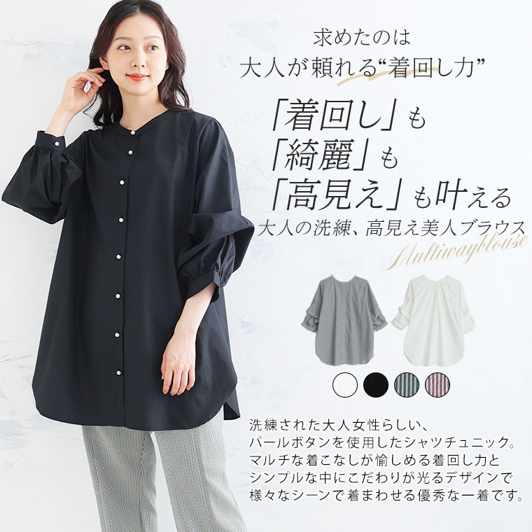【限定!全品P5倍1/11 13:59まで】 大きいサイズレディース トップス | Rin マルチWAY 美人 パールボタン シャツチュニック _ チュニック シャツ LL 3L 4L 5L 6L 秋 秋物 秋冬 ぽっちゃり ゆったり リン キレイめ 上品 高見え カジュアル ナチュラル プラスサイズ [5336073]
