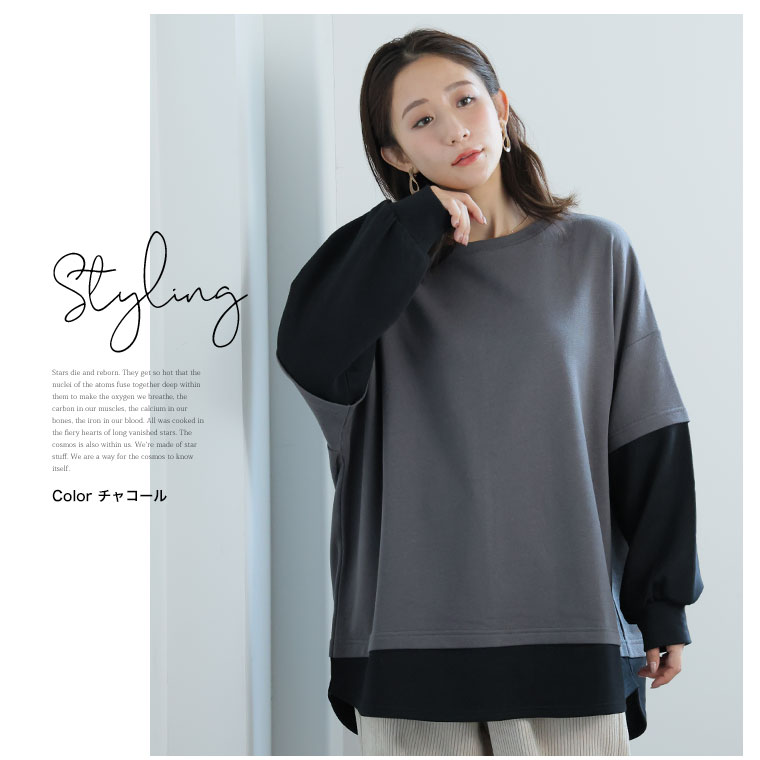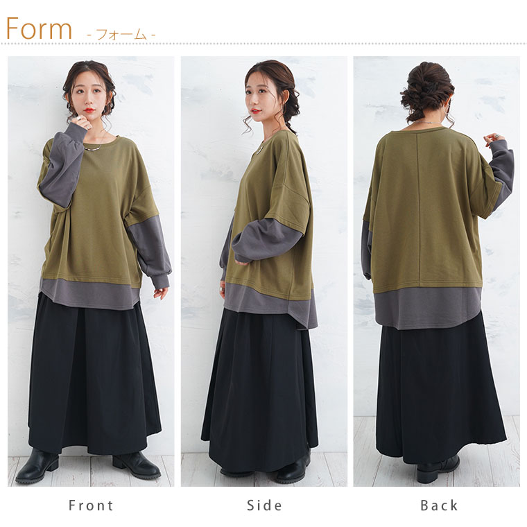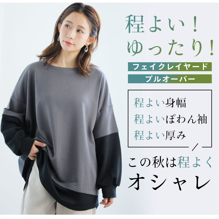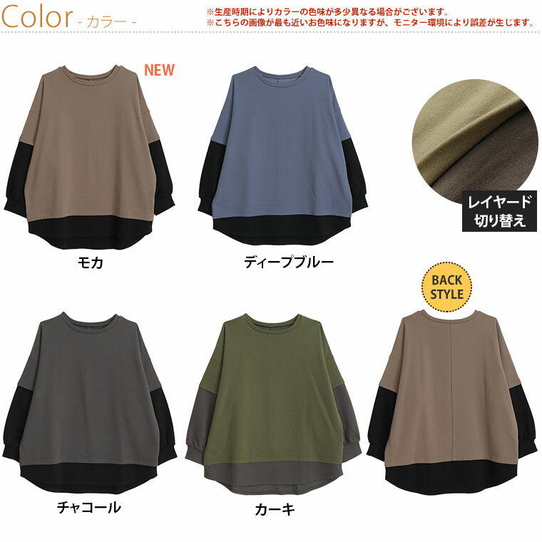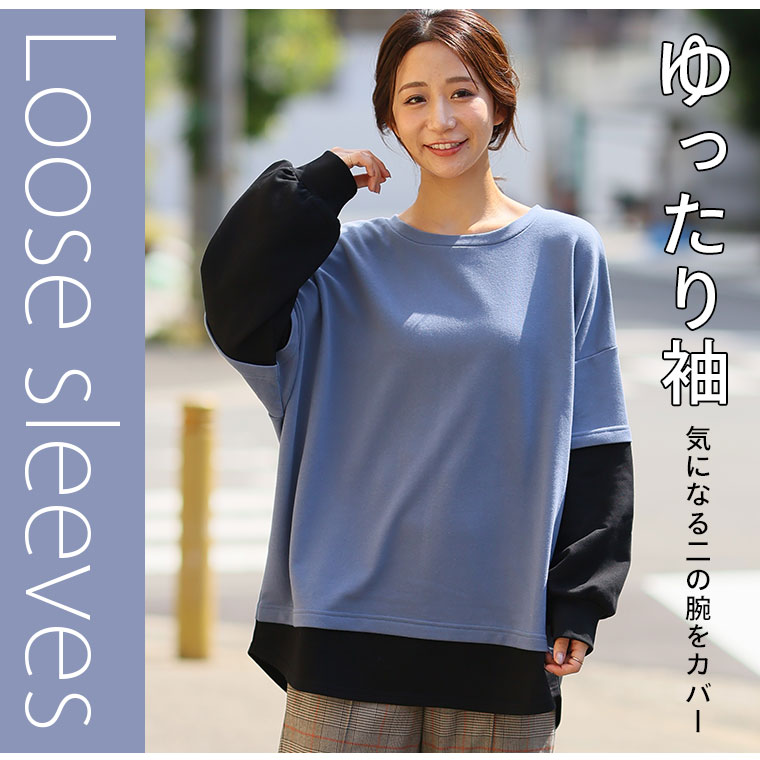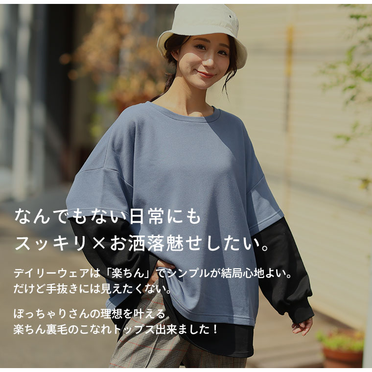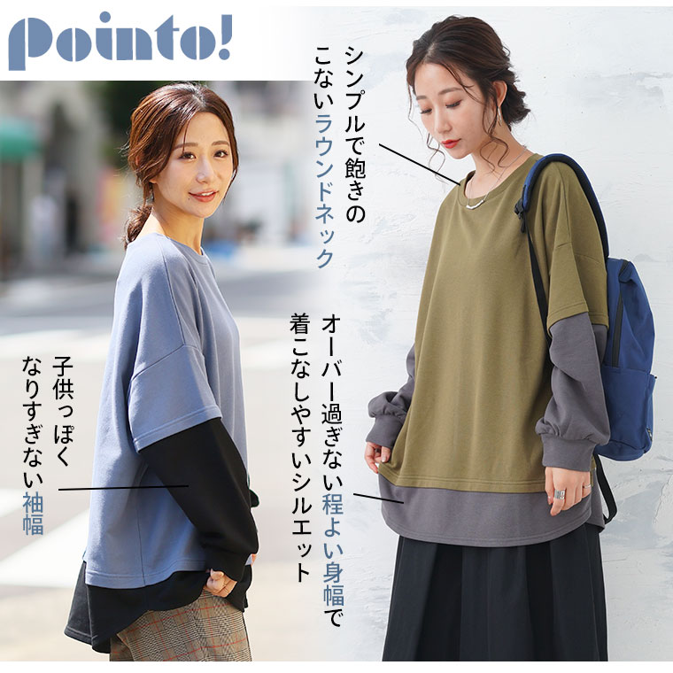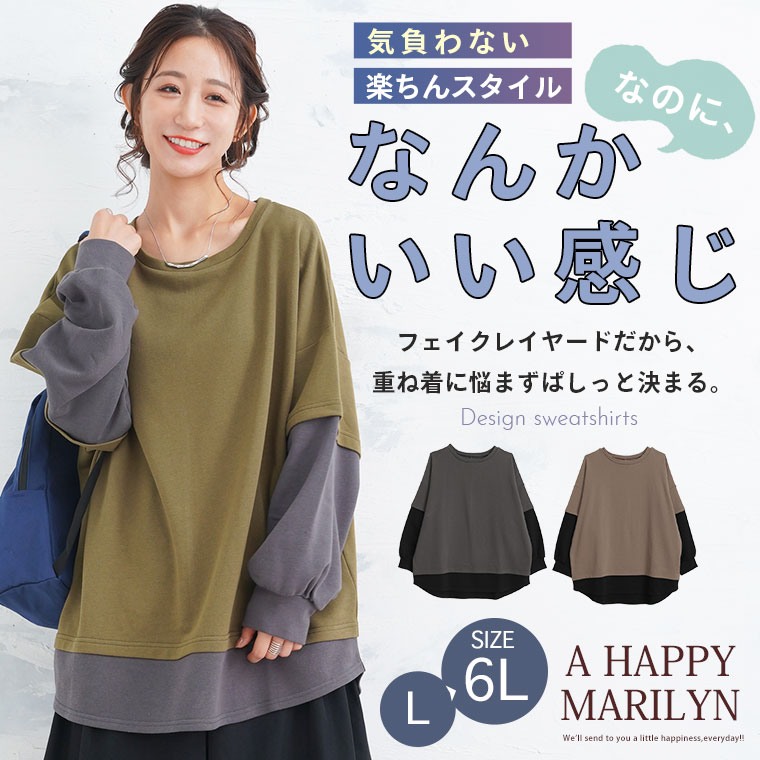 【限定!15%OFFクーポン配布】 大きいサイズ レディース トップス | 新色追加!!【ぽっちゃりさんのために作った】一枚でお洒落な スウェット フェイク レイヤード プルオーバー _ オリジナル トップス トレーナー スウェット 配色 長袖 LL 3L 4L 5L 6L 秋 冬 [473306]