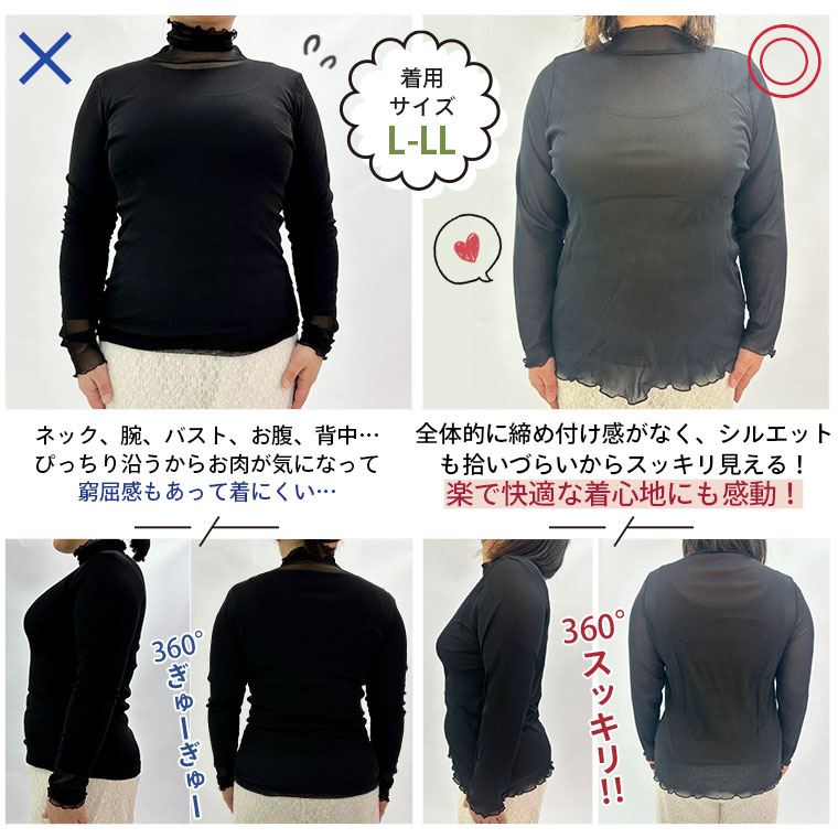 【期間限定クーポン配布】 大きいサイズ レディース トップス | 新色追加!! 楽に着られるようにAラインにしてみた シアー タートルネック 長袖トップス _ カットソー プルオーバー LL 3L 4L 5L 6L 7L 8L 長袖 春 春物 春服 ぽっちゃり ゆったり インナー [4850210]