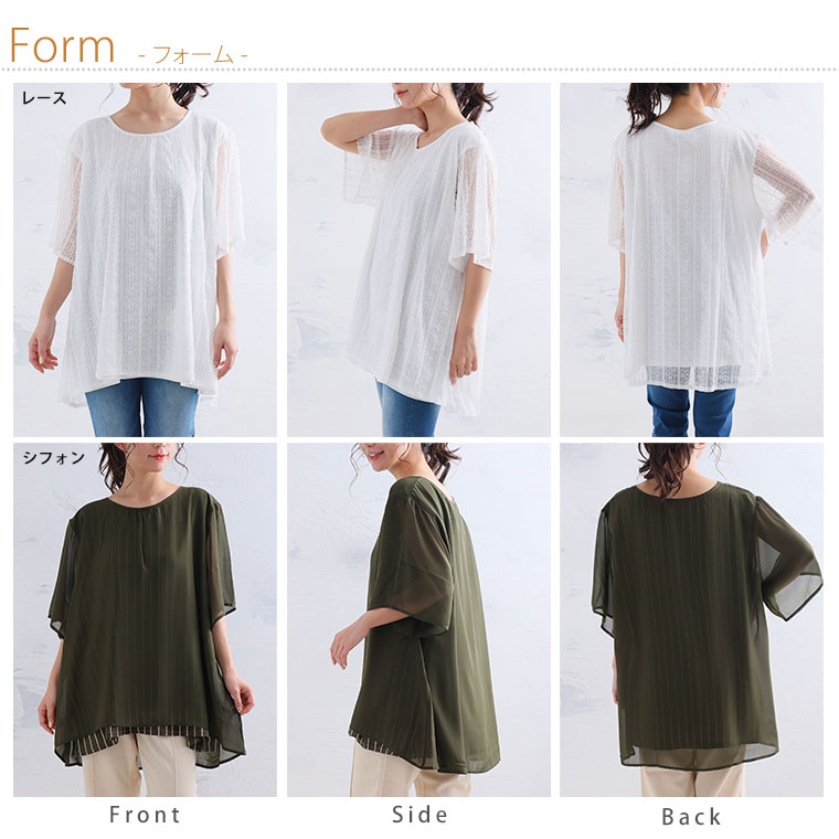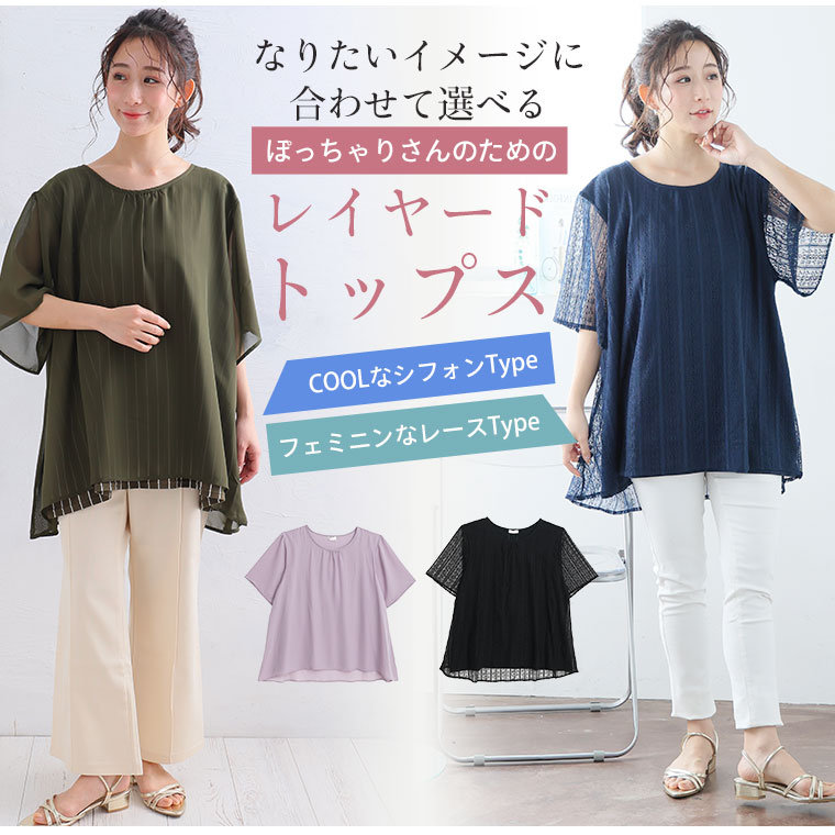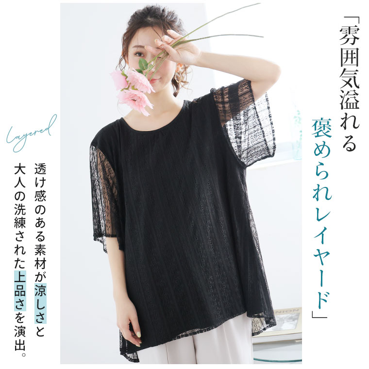 【限定!全品P5倍4/16 13:59まで】 大きいサイズ レディース トップス | リニューアル!! 上半身体型カバー選べる レイヤード プルオーバー _ カットソー LL 3L 4L 5L 6L 半袖 夏 夏物 夏服 夏用 ぽっちゃり ゆったり プラスサイズ シアー タンク シフォン レース [5554200]