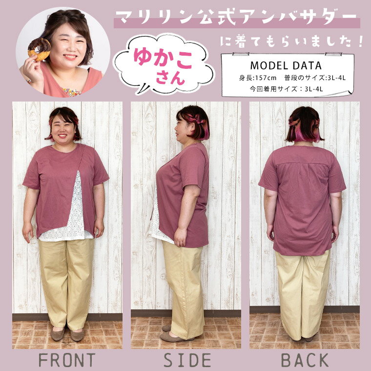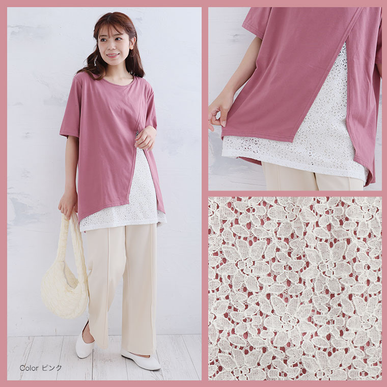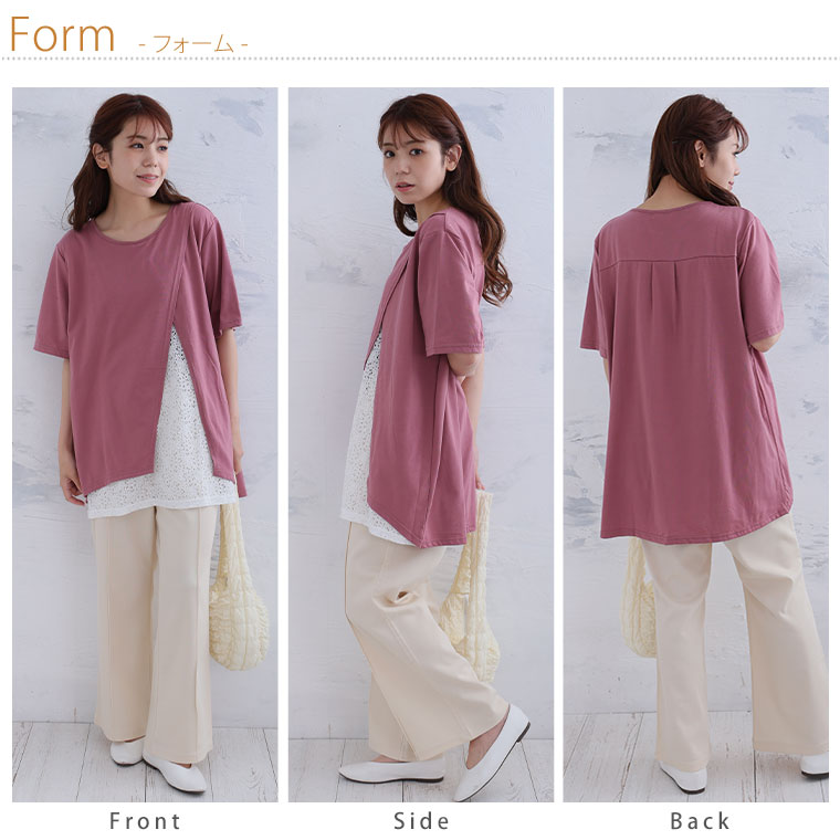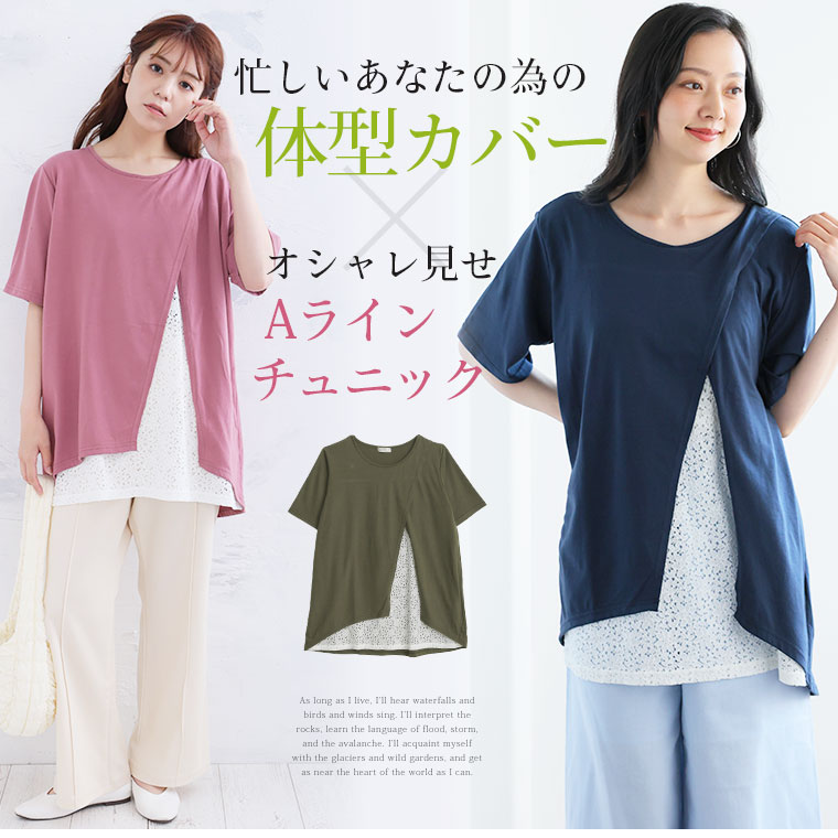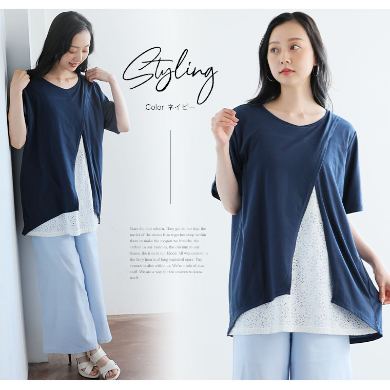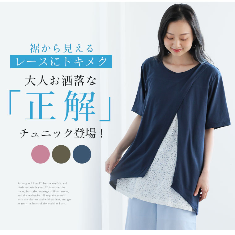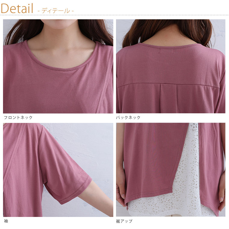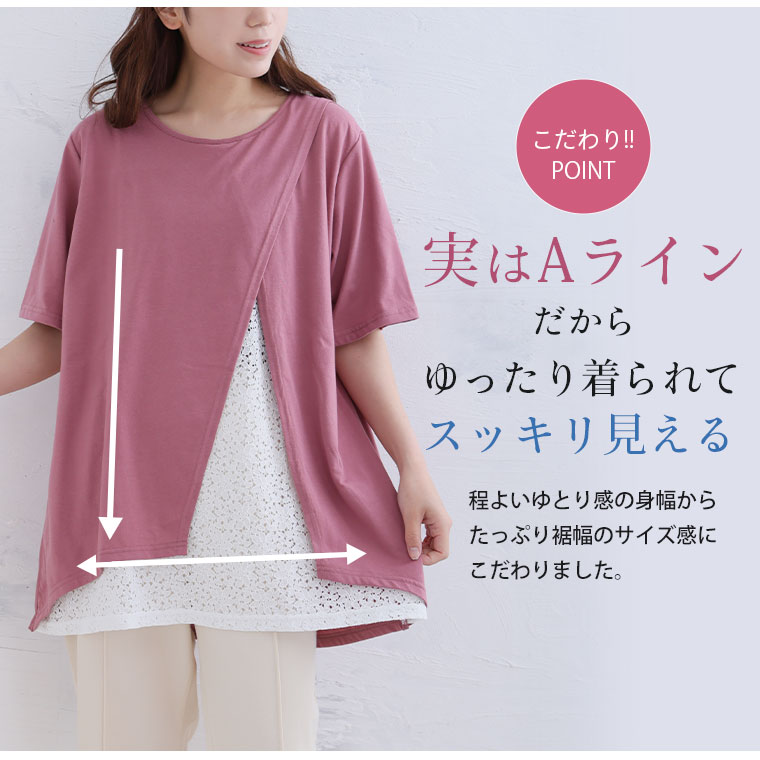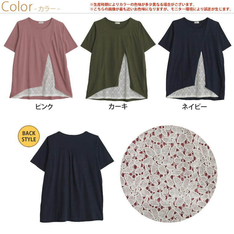 【限定!15%OFFクーポン】 大きいサイズ レディース トップス | カットソー 前シャンレースチュニック _ ブラウス LL 3L 4L 5L 夏 夏物 夏服 夏用 ぽっちゃり ゆったり お腹 胸周り 二の腕カバー お尻 腰周り 半袖 カジュアル ナチュラル プラスサイズ [5544030]