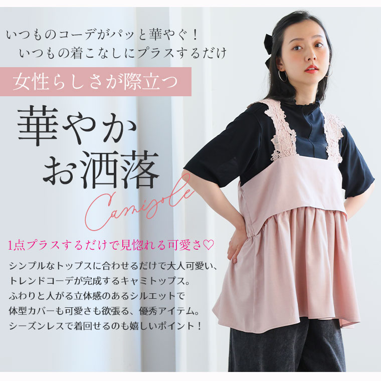 大きいサイズ レディース トップス | 華やぎ レース使い スタイルアップ フレアキャミトップス _ キャミソール キャミ LL 3L 4L 5L 6L 夏 夏物 夏服 夏用 ぽっちゃり ゆったり オーバーキャミソール レイヤード カジュアル ナチュラル プラスサイズ [5344106]