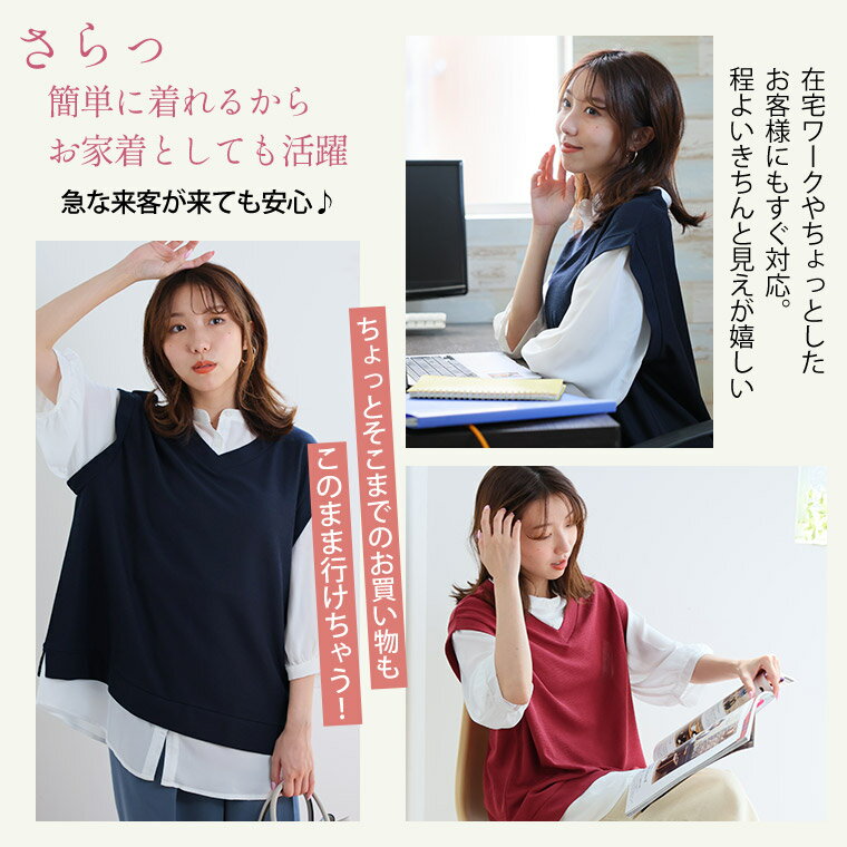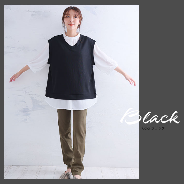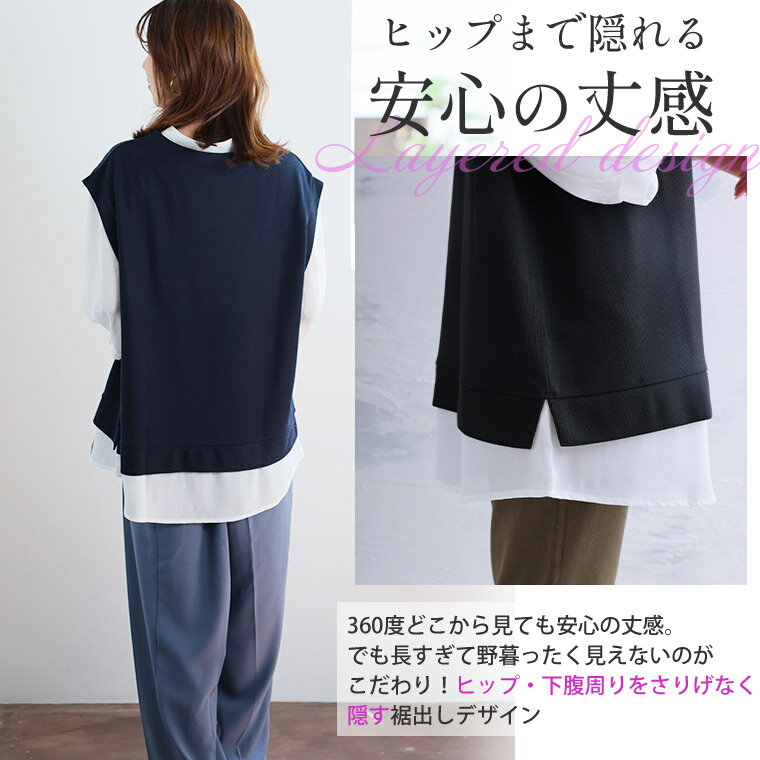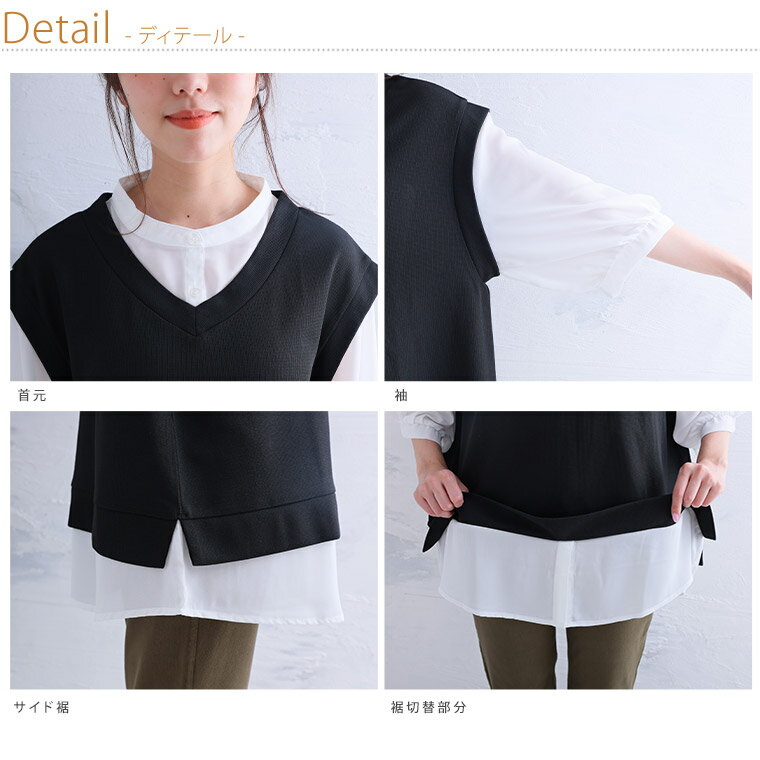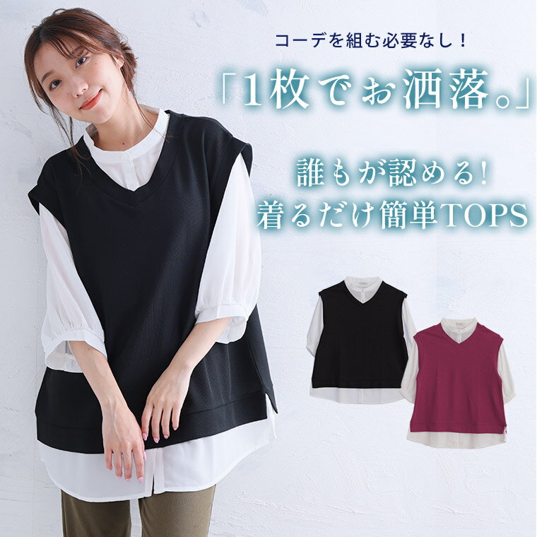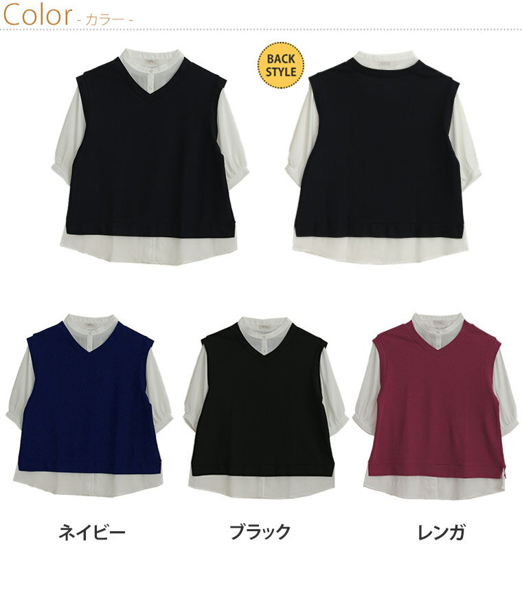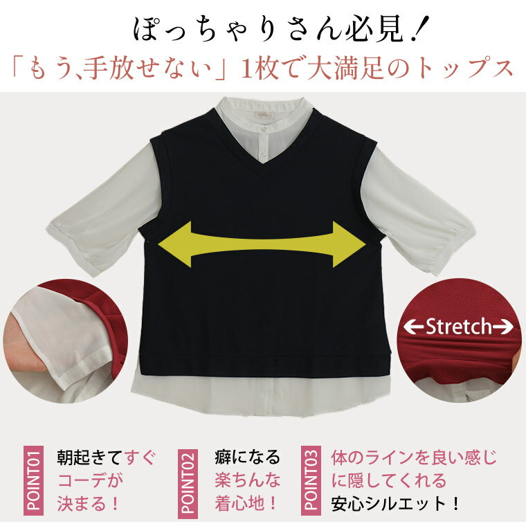 【期間限定クーポン配布】 大きいサイズ レディース チュニック | 六分布帛使い フェイクチュニック _ トップス チュニック ドッキング シャツ 襟 LL 3L 4L 5L 6L 夏 夏物 夏服 夏用 ぽっちゃり ゆったり かわいい カジュアル ナチュラル プラスサイズ [5546002]