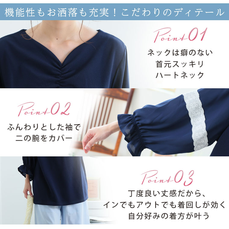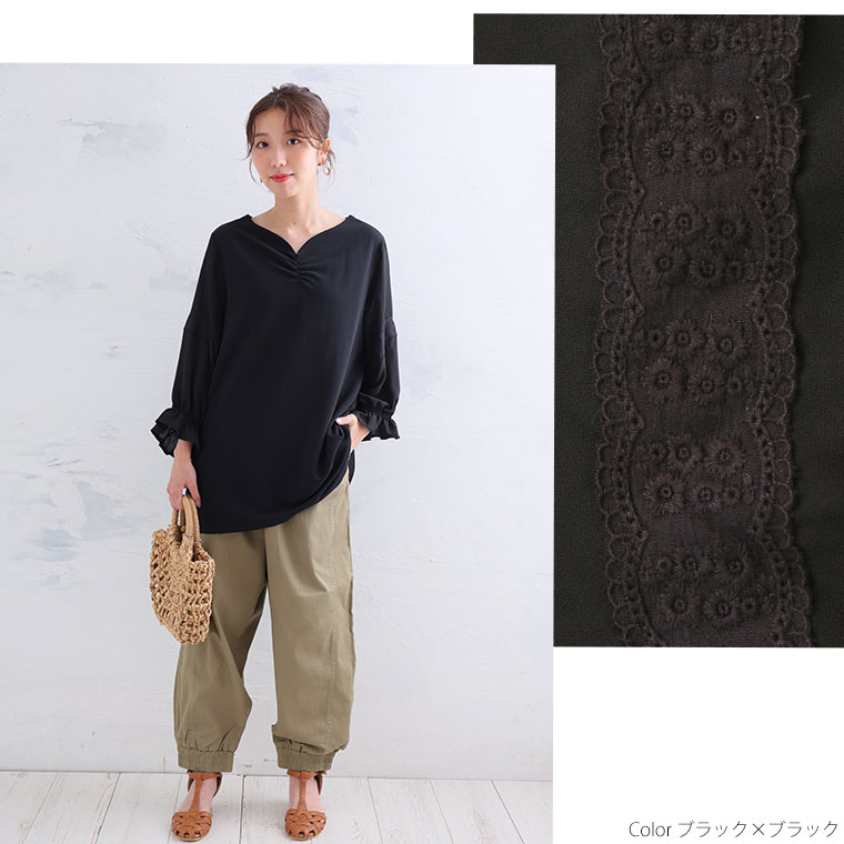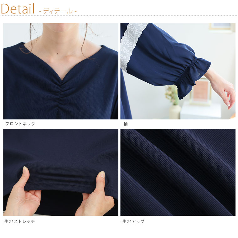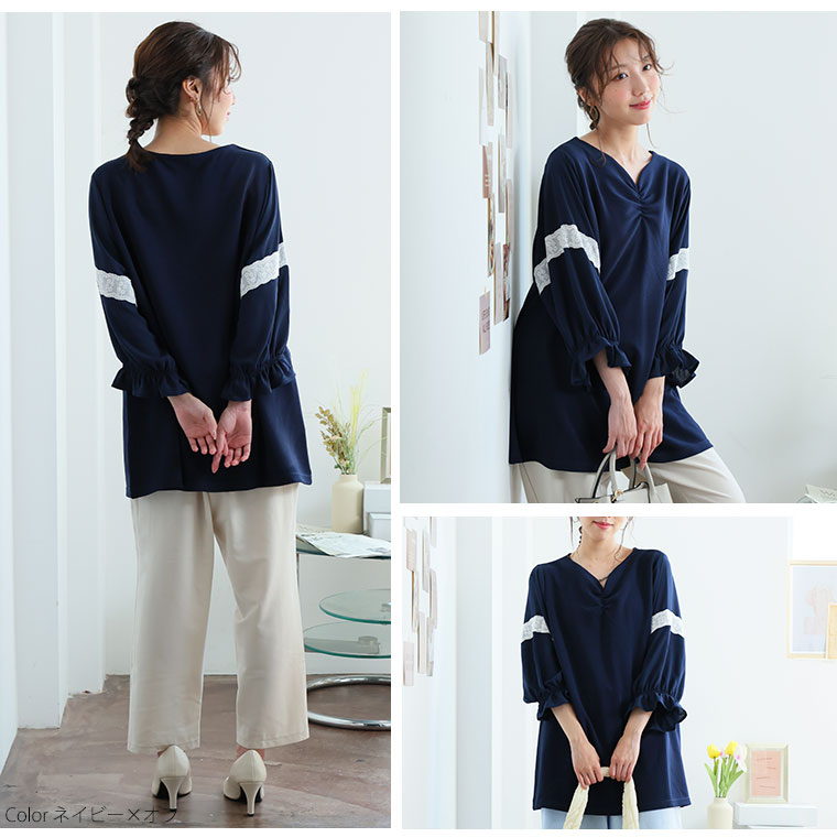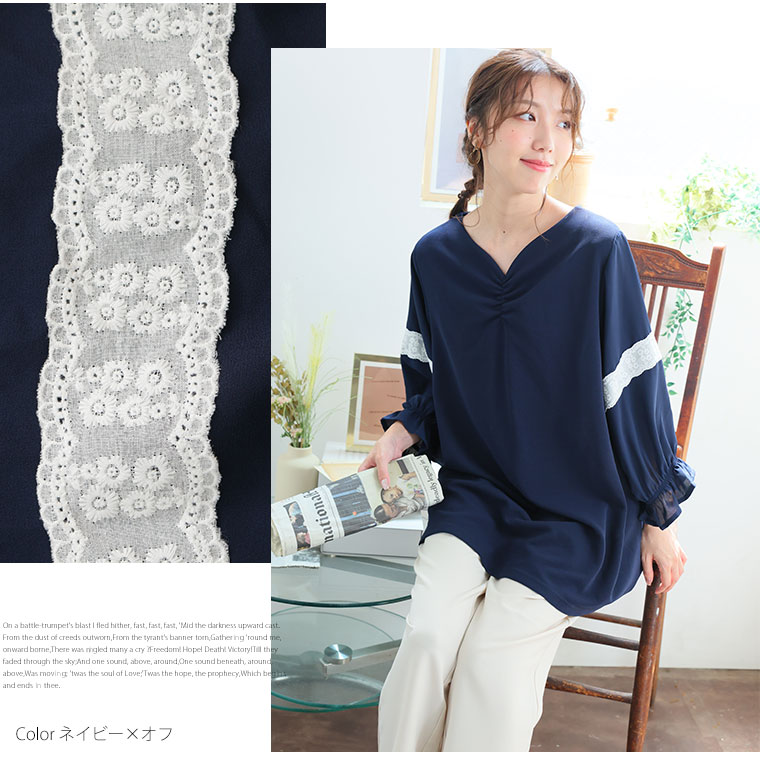 大きいサイズ レディース トップス | 袖シフォン使い チュニック _ トップス チュニック LL 3L 4L 5L 夏 夏物 夏服 秋 秋物 秋冬 異素材使い ぽわん袖 ぽっちゃり ゆったり プラスサイズ かわいい おしゃれ カジュアル ナチュラル [5546021]