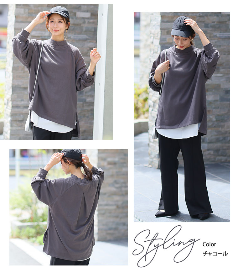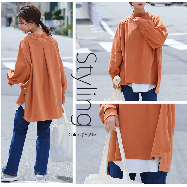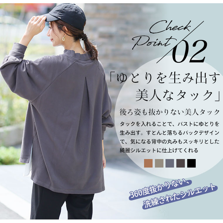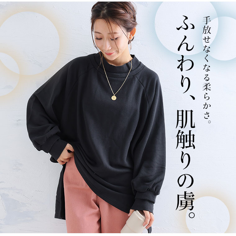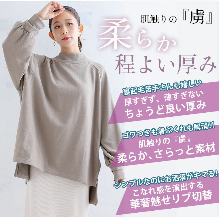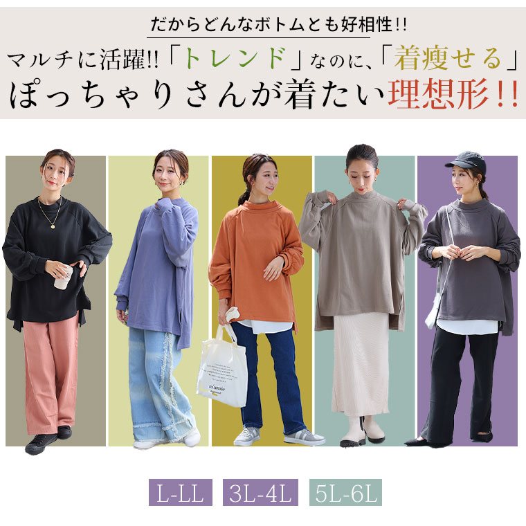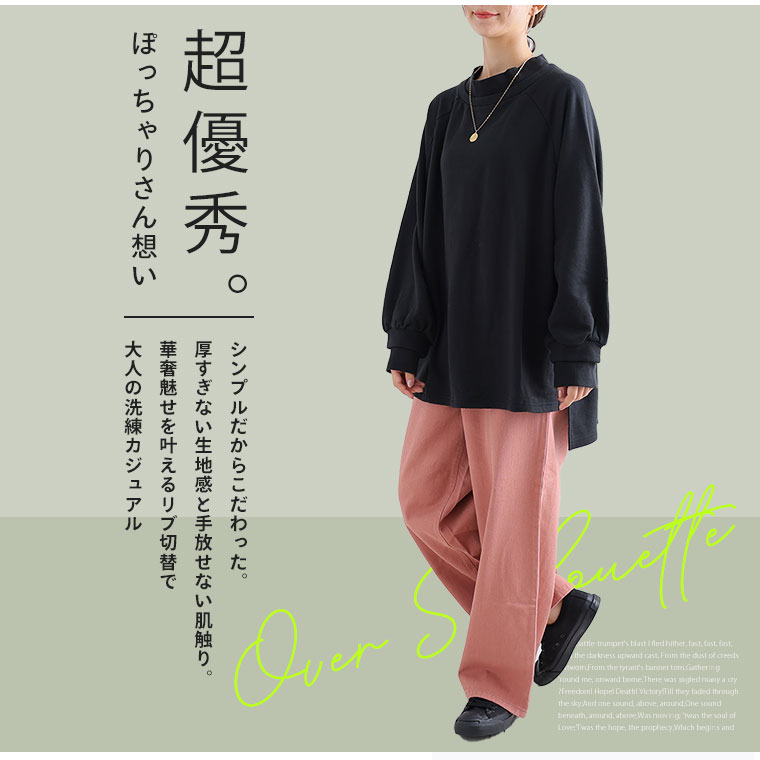 大きいサイズ レディース トップス | 肌触りの虜!!やみつきソフトタッチ裏毛 こなれシルエット 細魅せリブ使い 長袖 ゆるトレーナー _ オリジナル チュニック スウェット LL 3L 4L 5L 6L 秋 秋物 秋服 冬 冬物 冬服 ぽっちゃり ゆったり [659469]