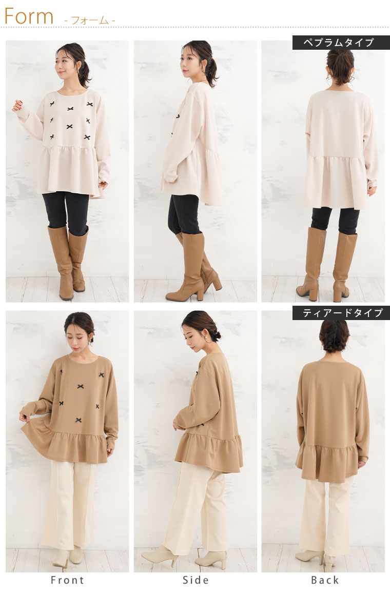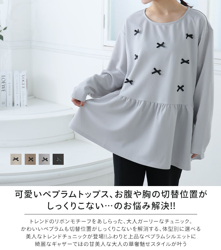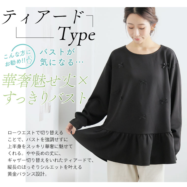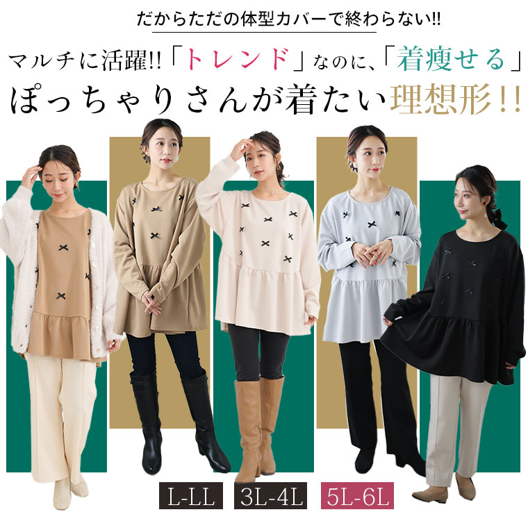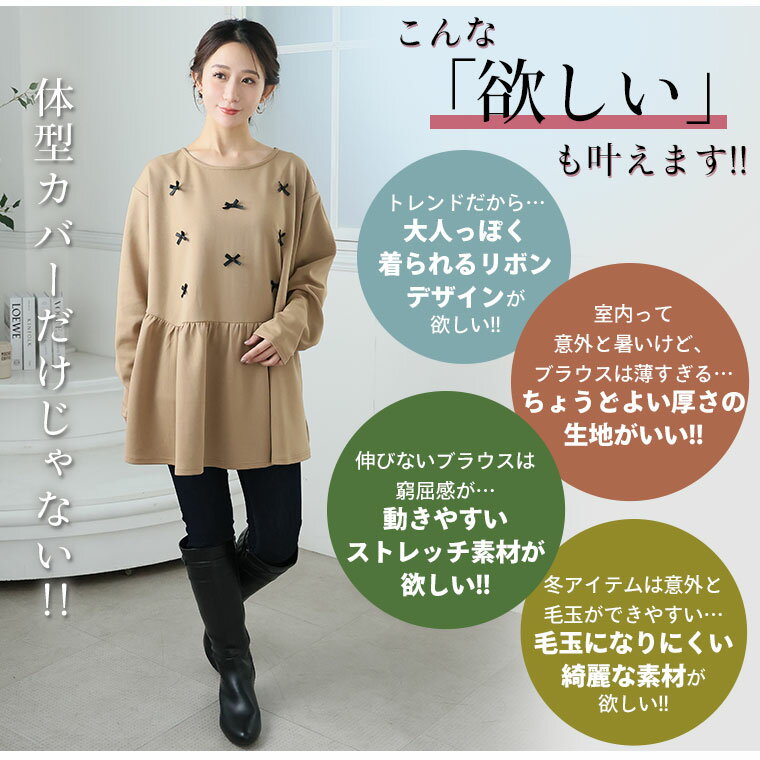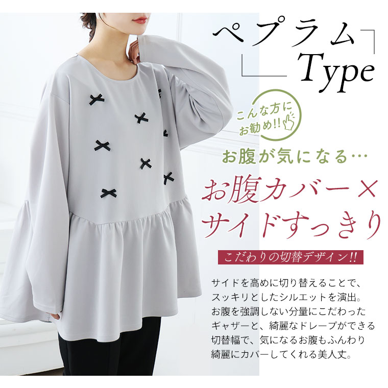 大きいサイズ レディース トップス | お腹&胸のお悩み別対応!選べる2デザイン 暑がりサンにおススメ 上品レディなほの甘美人ポンチ ティアード ペプラム チュニック _ オリジナル LL 3L 4L 5L 6L 長袖 冬 冬物 冬服 [500026/500027]