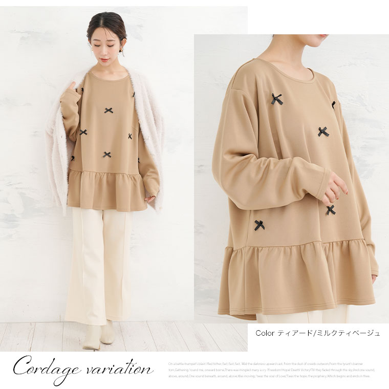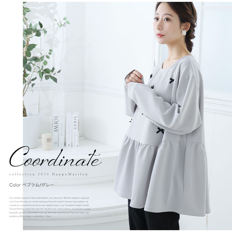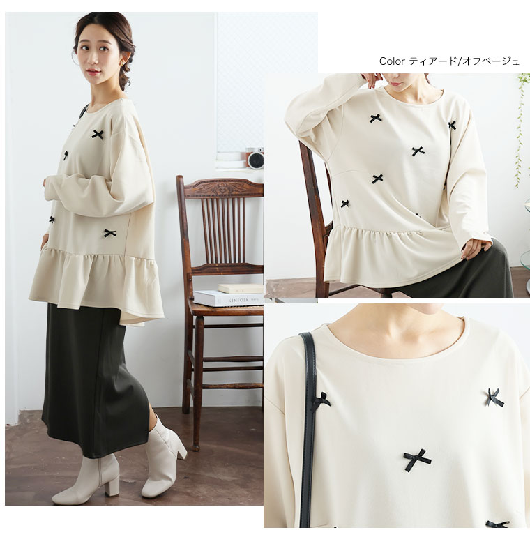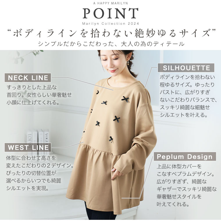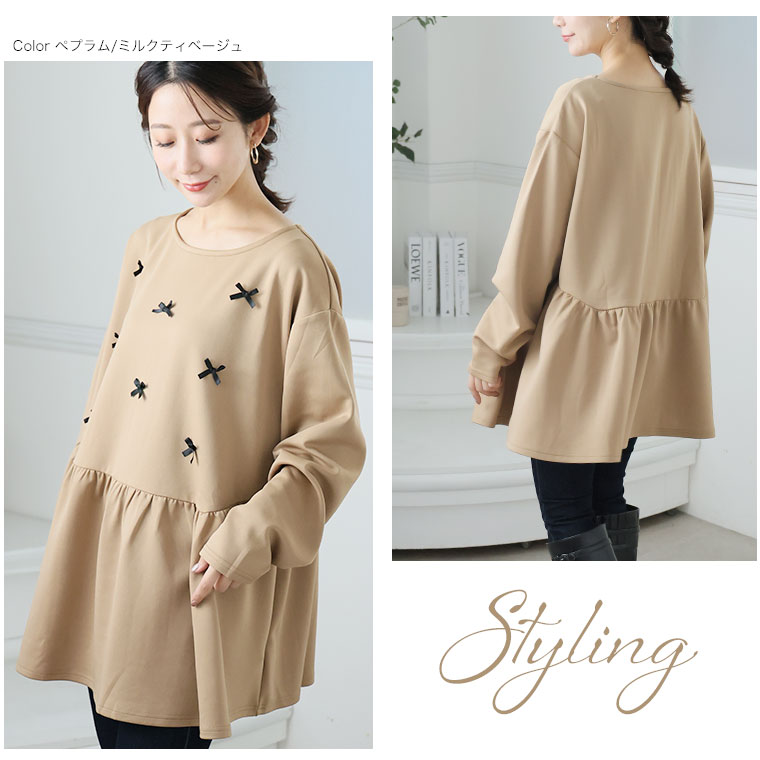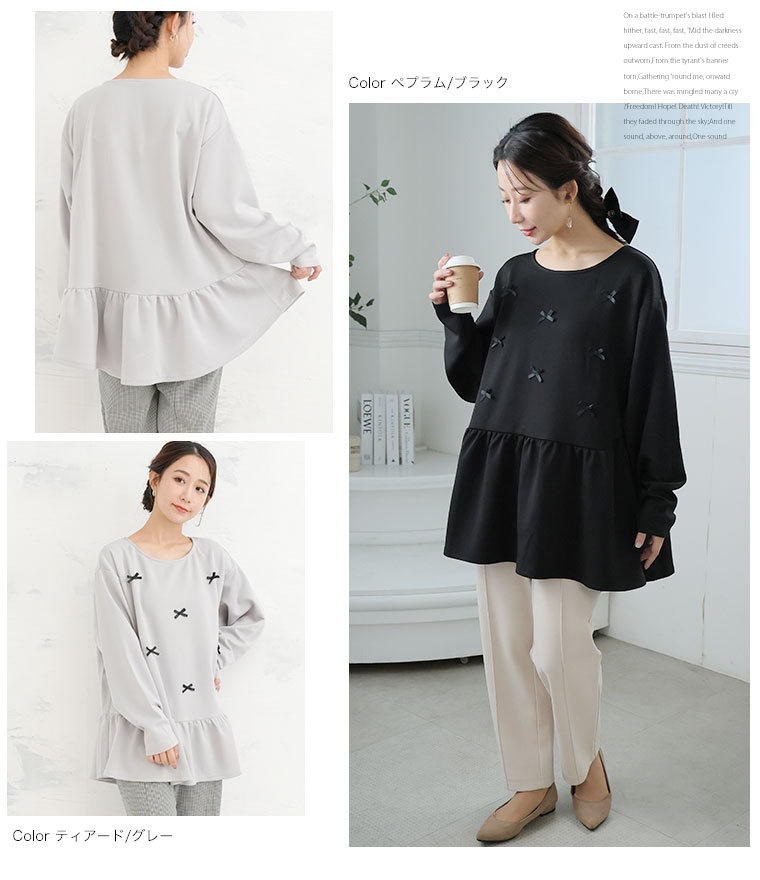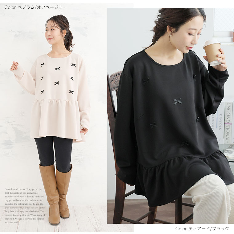 大きいサイズ レディース トップス | お腹&胸のお悩み別対応!選べる2デザイン 暑がりサンにおススメ 上品レディなほの甘美人ポンチ ティアード ペプラム チュニック _ オリジナル LL 3L 4L 5L 6L 長袖 冬 冬物 冬服 [500026/500027]