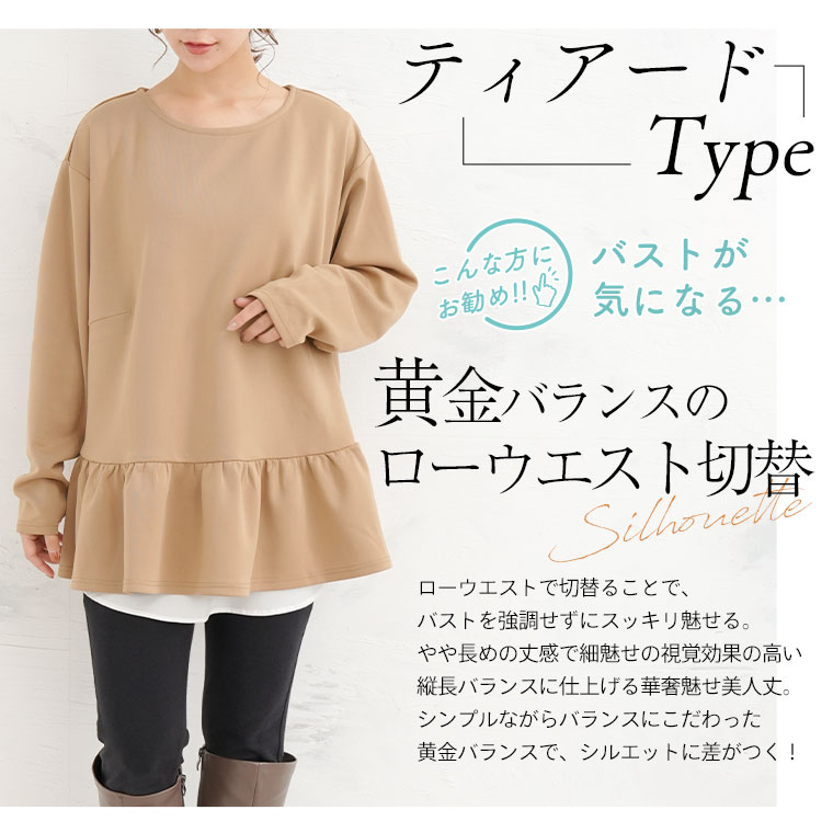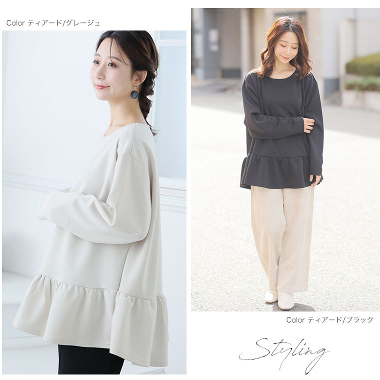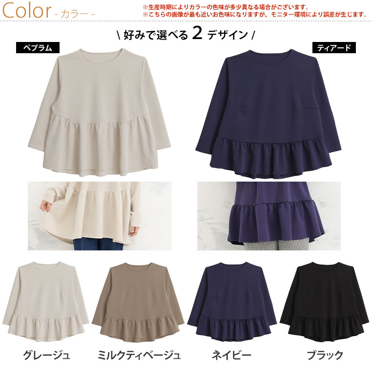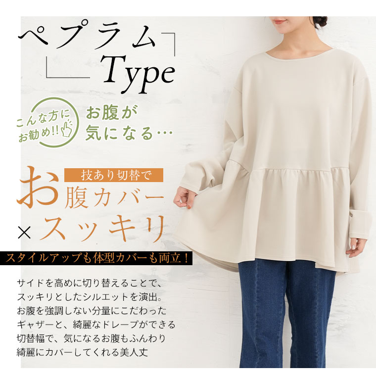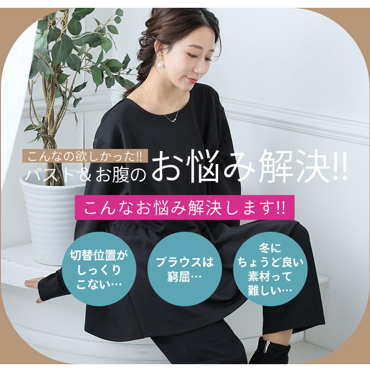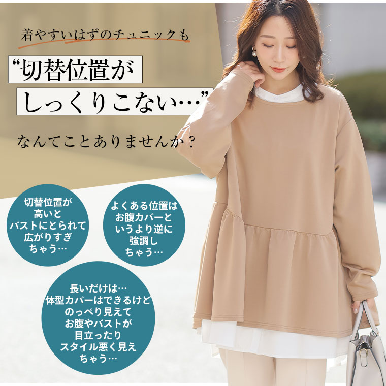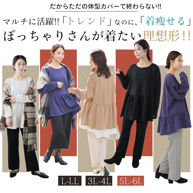 大きいサイズ レディース トップス | お腹&胸のお悩み別対応!選べる2デザイン 暑がりサンにおススメ 美人ポンチ ティアード ペプラム チュニック _ オリジナル LL 3L 4L 5L 6L 長袖 冬 冬物 冬服 ぽっちゃり ゆったり [500024/500025]