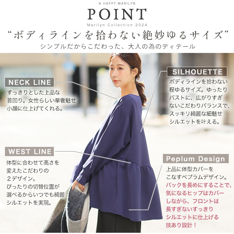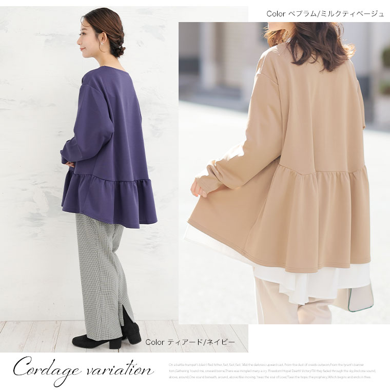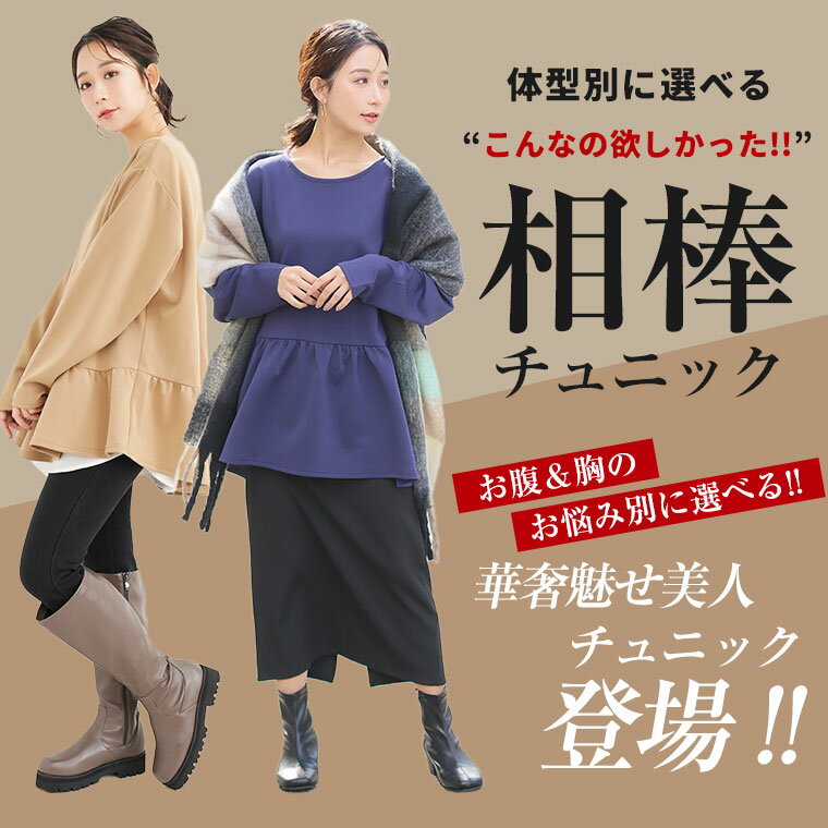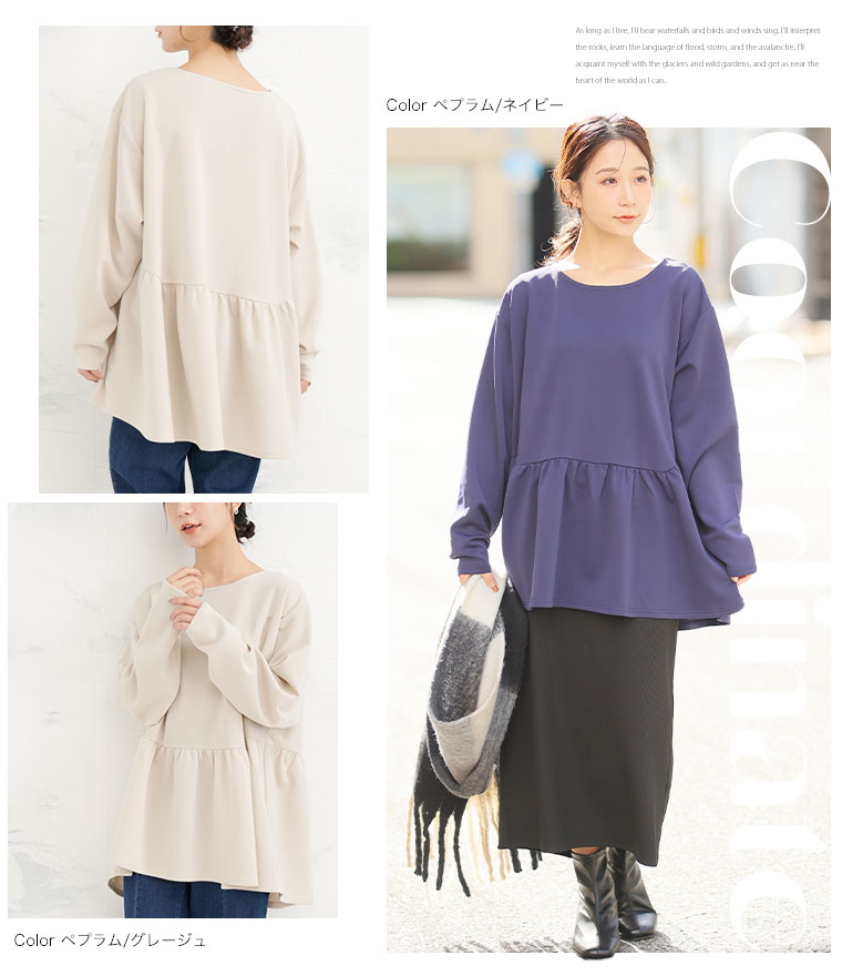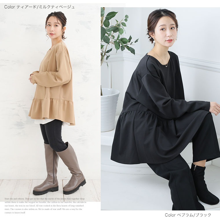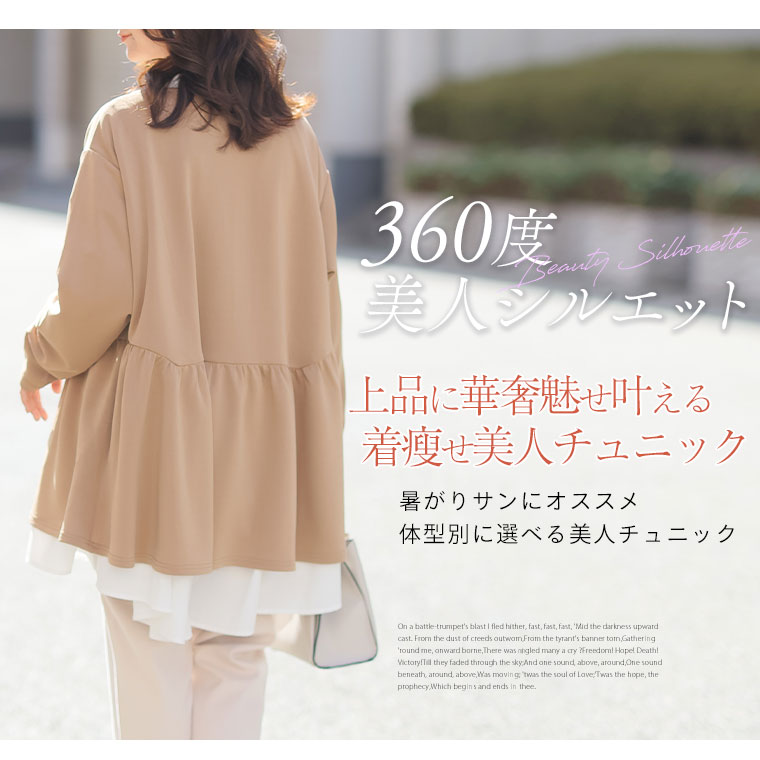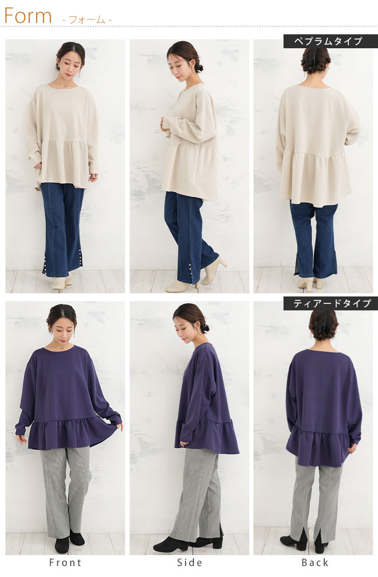 大きいサイズ レディース トップス | お腹&胸のお悩み別対応!選べる2デザイン 暑がりサンにおススメ 美人ポンチ ティアード ペプラム チュニック _ オリジナル LL 3L 4L 5L 6L 長袖 冬 冬物 冬服 ぽっちゃり ゆったり [500024/500025]