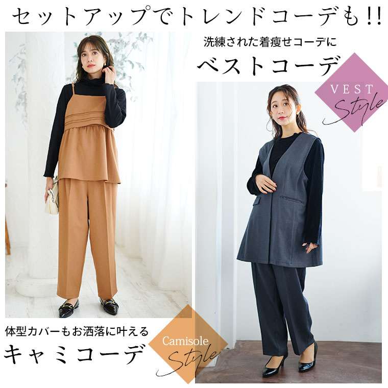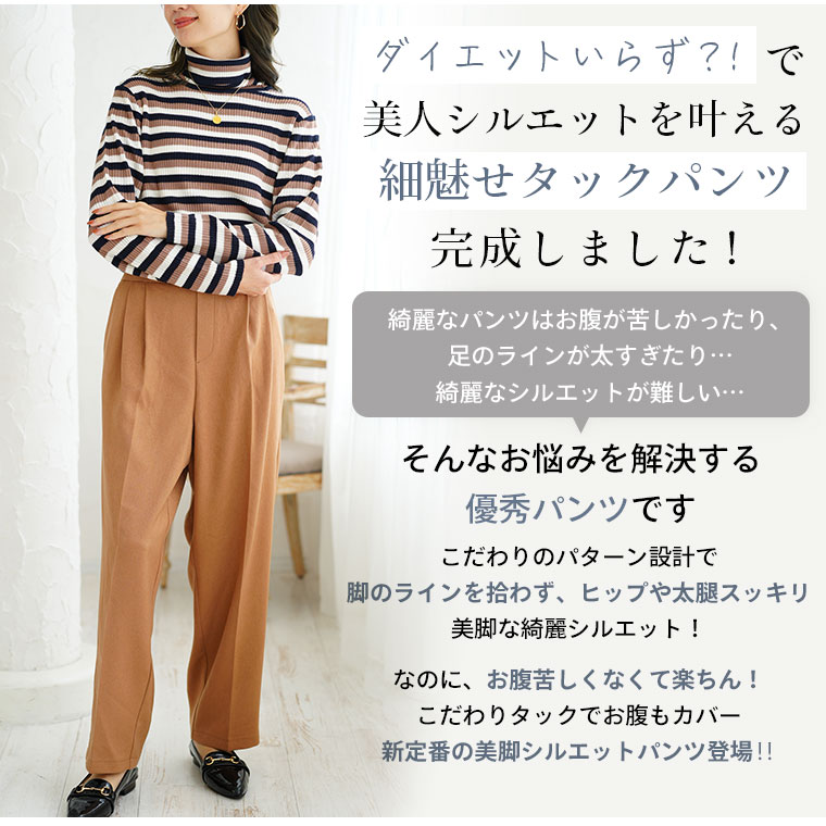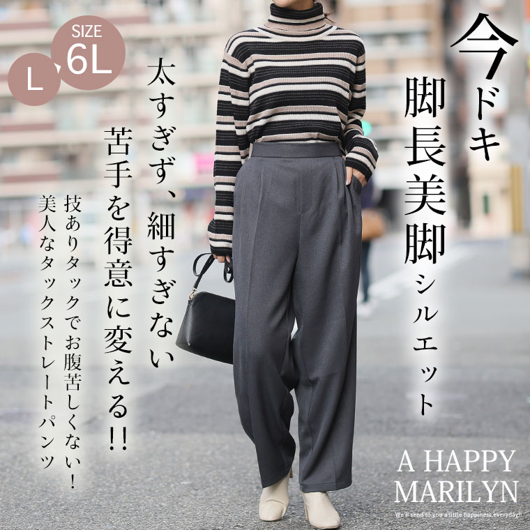 【限定!全品P5倍1/11 13:59まで】 大きいサイズ レディース パンツ | 高身長さん小柄さんも選べる2丈 お腹苦しくないのに脚長美脚!! 美人シルエットが叶うふんわりツイル トレンドタック ワイドパンツ ストレートパンツ _ オリジナル LL 3L 4L 5L 6L 冬 [641267/641268]
