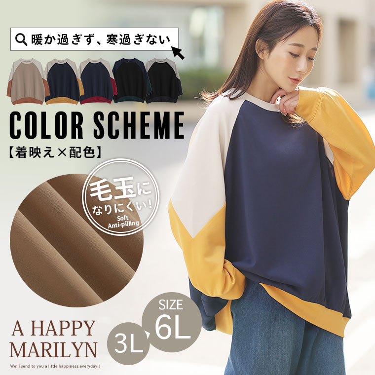 大きいサイズ レディース トップス | 厚すぎないのが着やすい!!配色デザイン ポンチ スウェット トップス _ トレーナー 3L 4L 5L 6L 長袖 冬 冬物 冬服 ぽっちゃり ゆったり プラスサイズ かわいい おしゃれ カジュアル [500037]