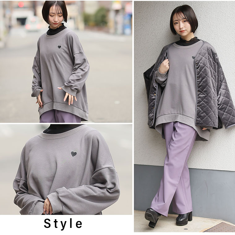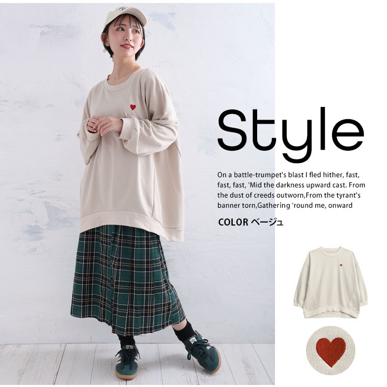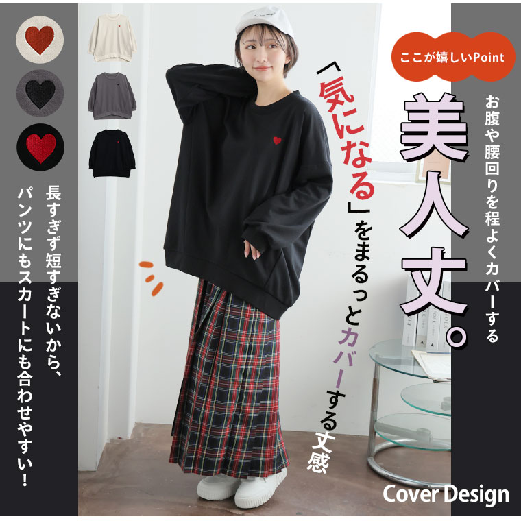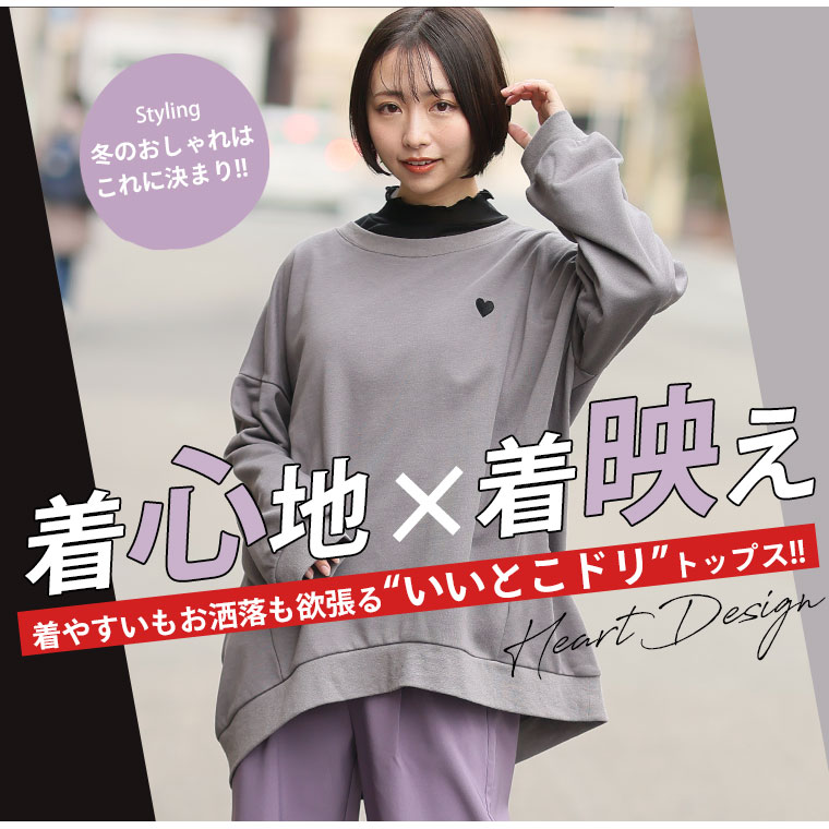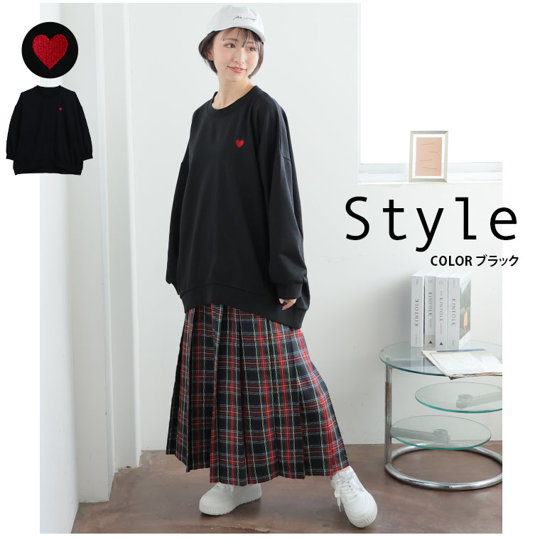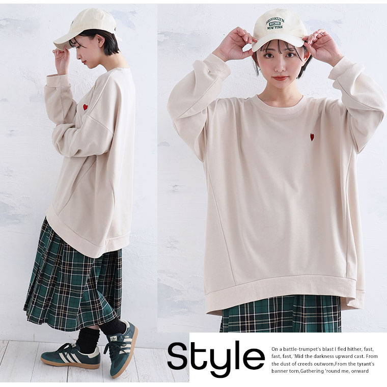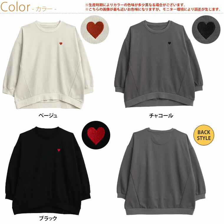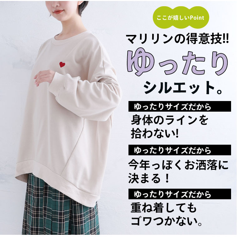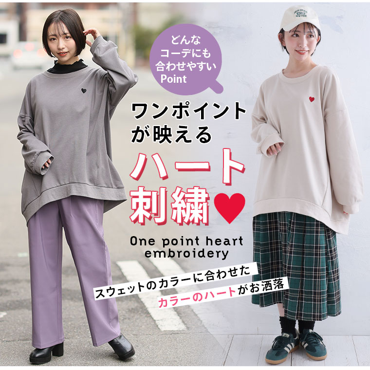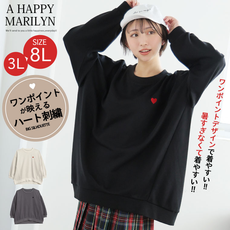 【限定!全品P5倍1/26 13:59まで】 大きいサイズ レディース トップス | ハート刺繍 裏毛 スウェット _ トップス トレーナー スウェット 3L 4L 5L 6L 7L 8L 長袖 春 春物 春服 ぽっちゃり ゆったり プラスサイズ 裏毛 ビッグシルエット パーカー かわいい おしゃれ [473379]