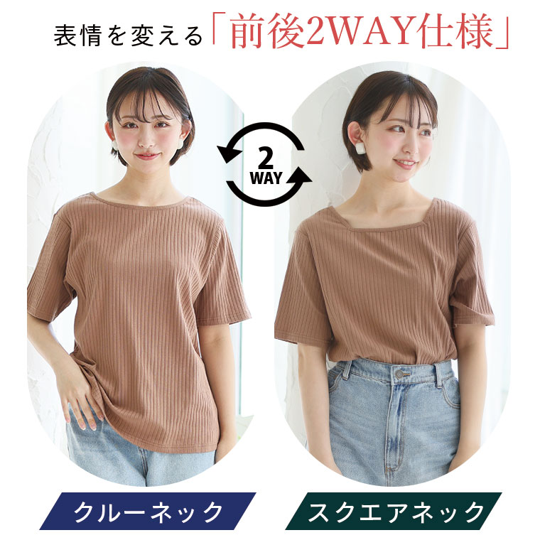 【限定!全品P5倍3/6 13:59まで】 大きいサイズ レディース トップス | スクエア/クルーネック 2WAY コーデの幅を広げる リブ カットソー _ プルオーバー リブトップス リブインナー LL 3L 4L 5L 6L 7L 8L 五分袖 春 春物 春服 夏 夏物 夏服 ぽっちゃり ゆったり [473374]