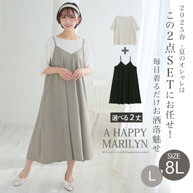 【限定!全品P5倍3/6 13:59まで】 大きいサイズ レディース ワンピース | スポッと着られる!!”楽かわ”シリーズ! 膨れ 半袖 ボートネック × キャミワンピース 2点セット _ワンピ LL 3L 4L 5L 6L 7L 8L 五分袖 春 春物 春服 夏 夏物 夏服 ぽっちゃり [1245407/1245408]
