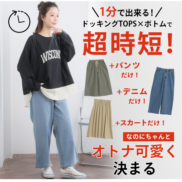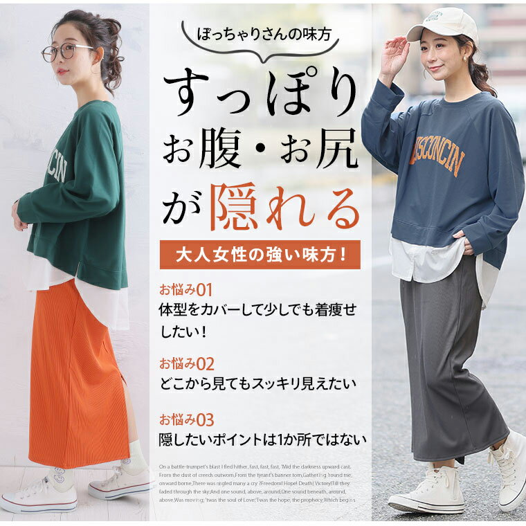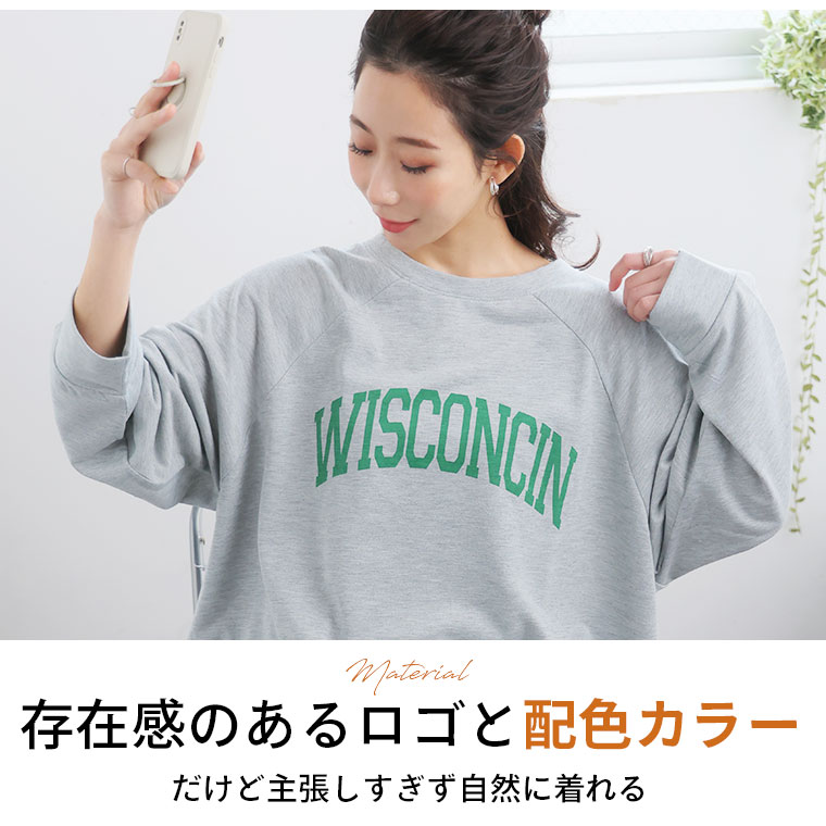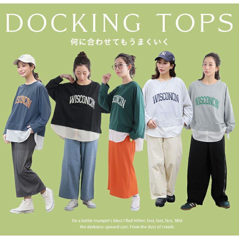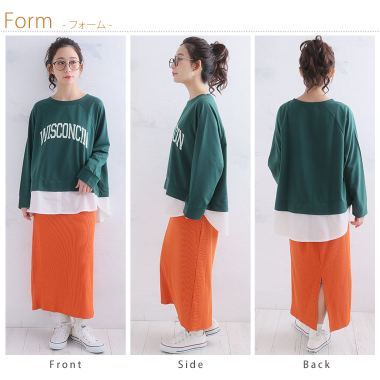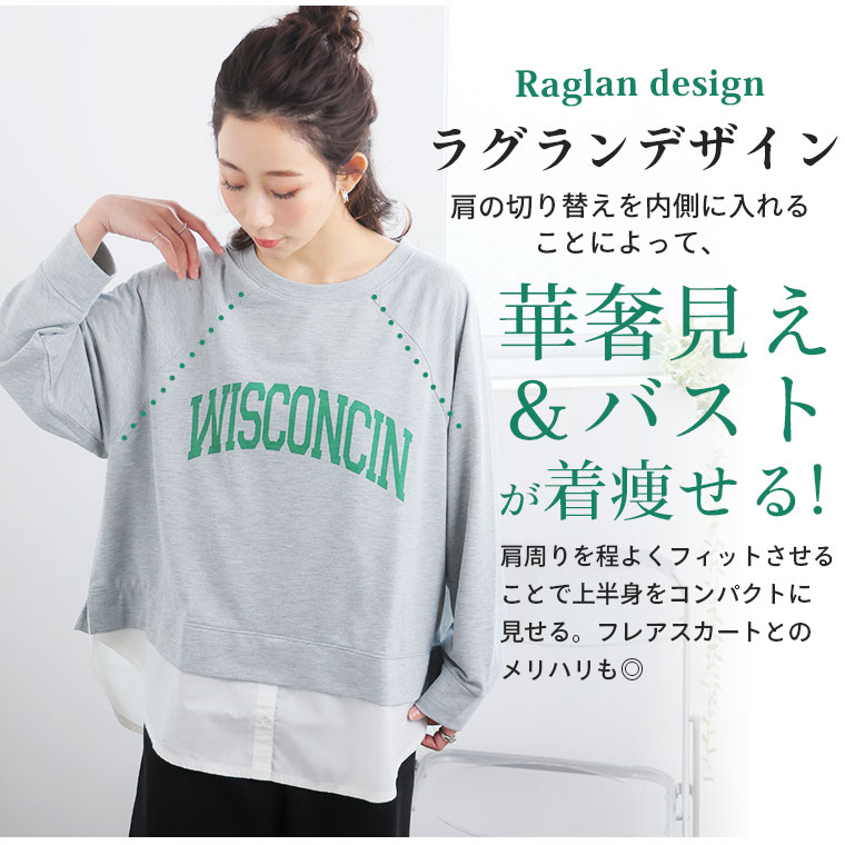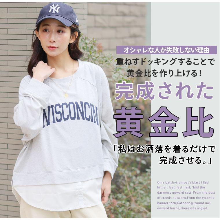 大きいサイズ レディース トップス | カレッジロゴ レイヤード風デザイン ロンT _ カットソー プルオーバー LL 3L 4L 5L 6L 長袖 春 春物 春服 夏 夏物 夏服 ぽっちゃり ゆったり プラスサイズ 裾見せ ドッキング ミニ裏毛 [15218]