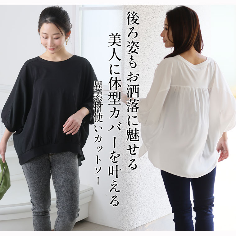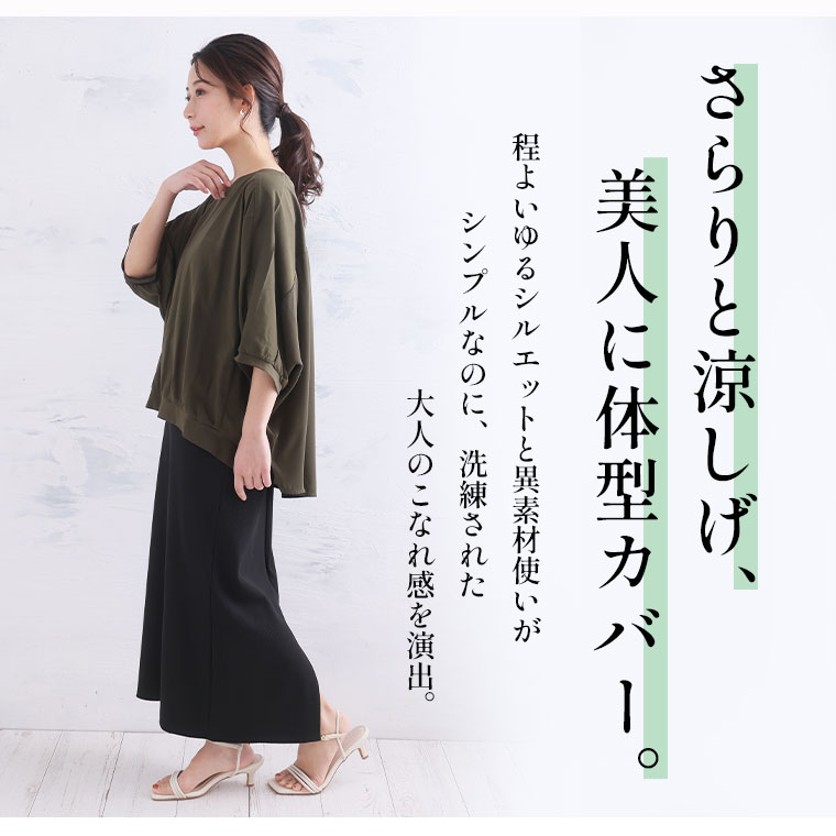 【期間限定クーポン配布】 大きいサイズ レディース トップス | ゆるさら美人 異素材切替え プルオーバー _ トップス カットソー プルオーバー LL 3L 4L 5L 6L 半袖 春 春物 春服 夏 夏物 夏服 ぽっちゃり ゆったり プラスサイズ かわいい おしゃれ [361312]