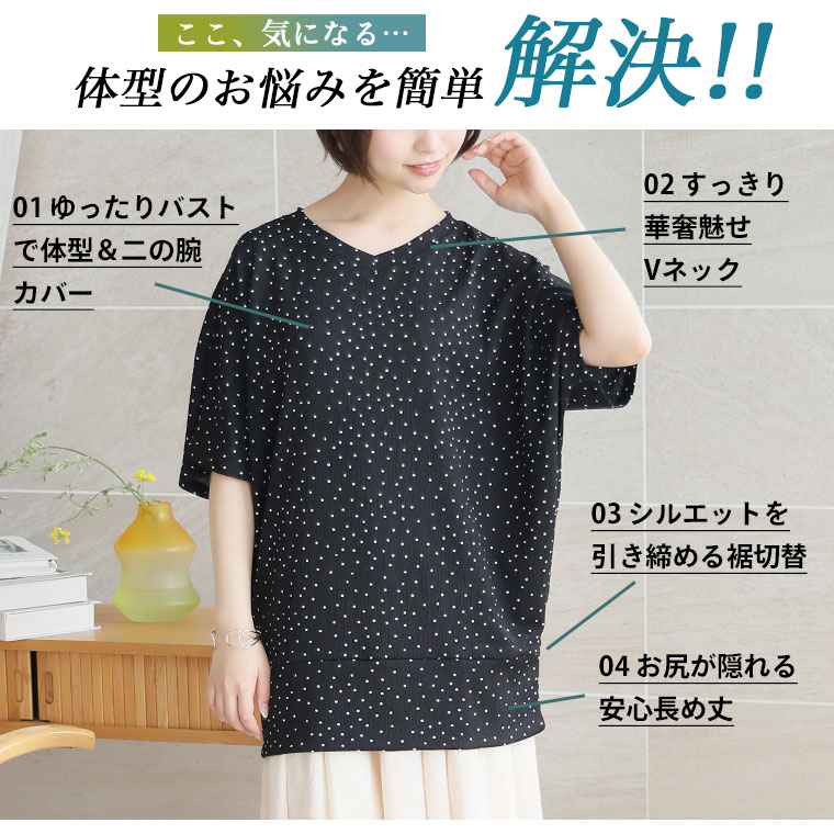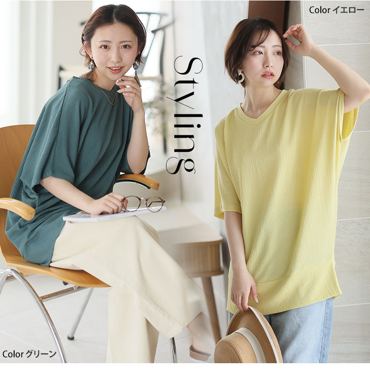 【4h限定全品20%オフクーポン】 大きいサイズ レディース トップス | さらりと涼しい! 体型カバーが得意な 華奢魅せ Vネック カット楊柳 ドルマン _ カットソー プルオーバー LL 3L 4L 5L 6L 7L 8L 半袖 五分袖 夏 夏物 夏服 夏用 ぽっちゃり ゆったり [647088]