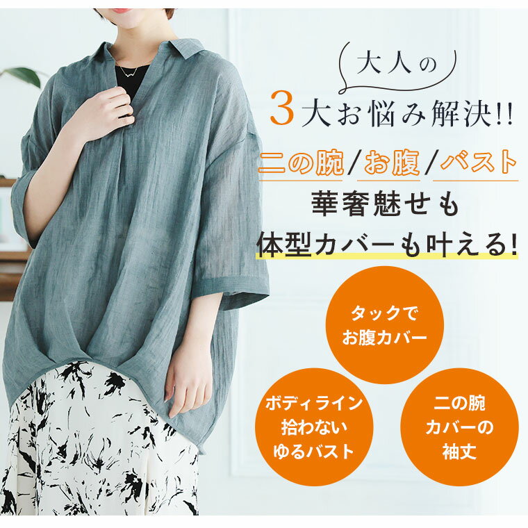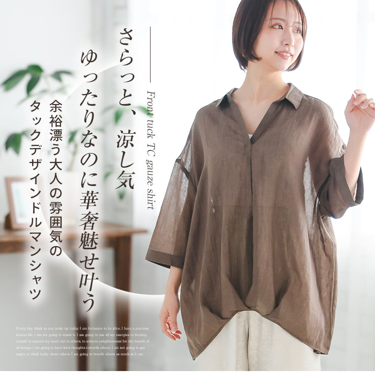 【限定!全品P5倍4/6 13:59まで】 大きいサイズ レディース シャツ | さらりとお洒落!ゆったりなのに着痩せる!フロントタック スキッパードルマン TCガーゼ シャツ _ ブラウス トップス 3L 4L 5L 6L 半袖 五分袖 夏 夏物 夏服 夏用 ぽっちゃり ゆったり [641369/641370]