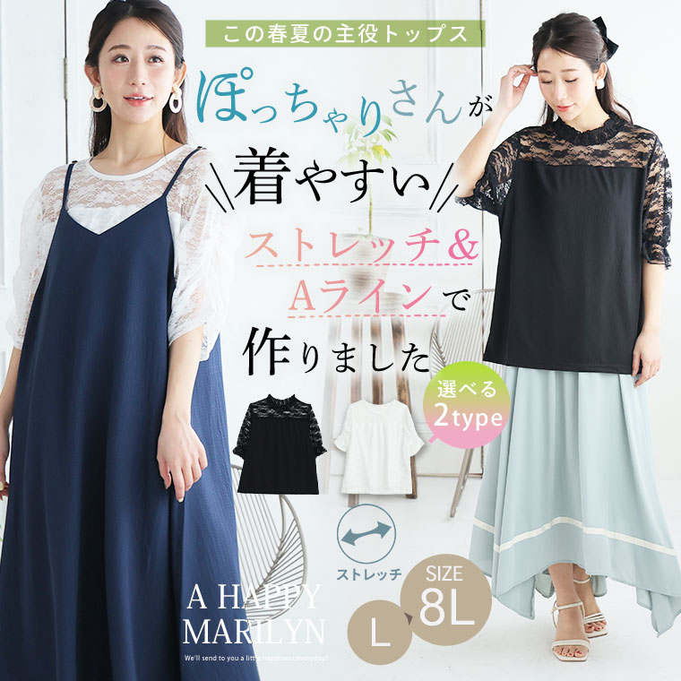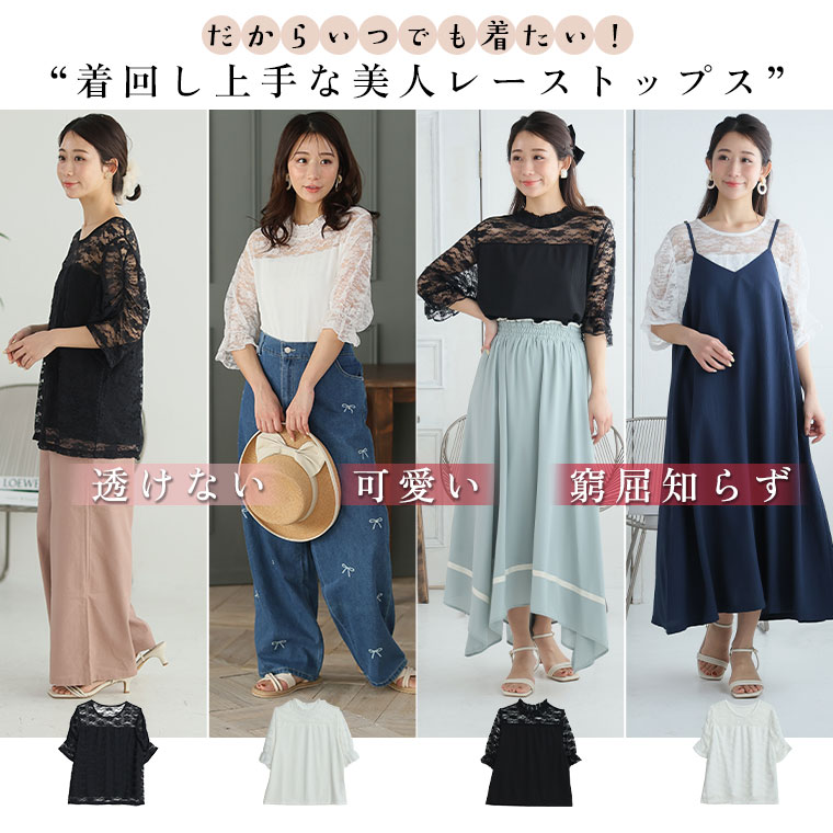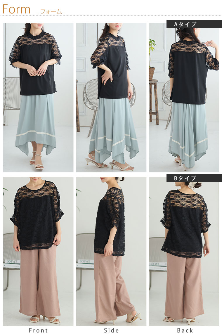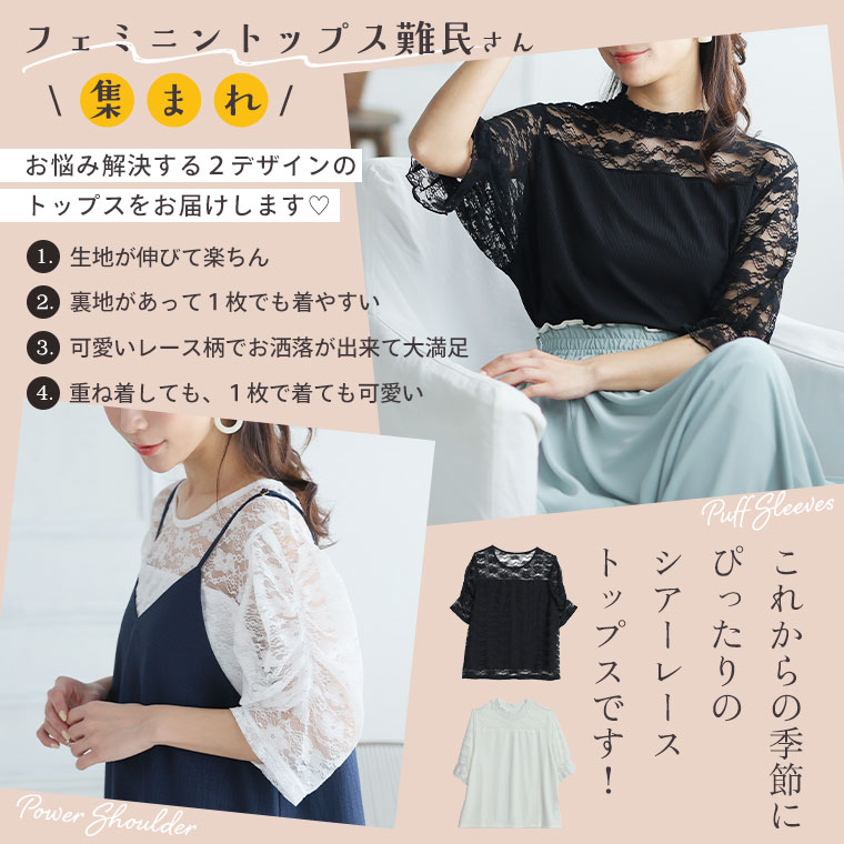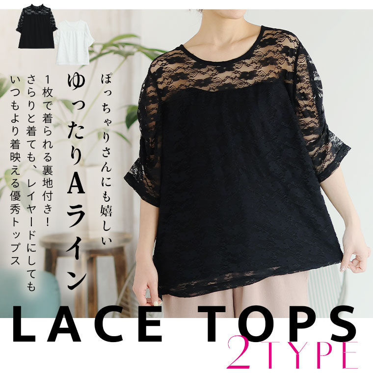 【4h限定全品20%オフクーポン】 大きいサイズ レディース トップス | 2タイプの袖から選べる 透け感 レース トップス _ カットソー プルオーバー LL 3L 4L 5L 6L 7L 8L 半袖 夏 夏物 夏服 夏用 ぽっちゃり ゆったり シアー 透け感 ストレッチ [473388/473389]