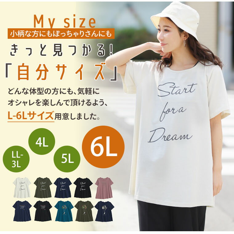 大きいサイズ レディース トップス | 綿100% 3プリントから選べる、ぽっちゃりさんの夏の味方。お腹が隠れる 大活躍 Tシャツ _ カットソー LL 3L 4L 5L 6L 半袖 夏 夏物 夏服 夏用 ぽっちゃり ゆったり [5554001/5554000/5554004]