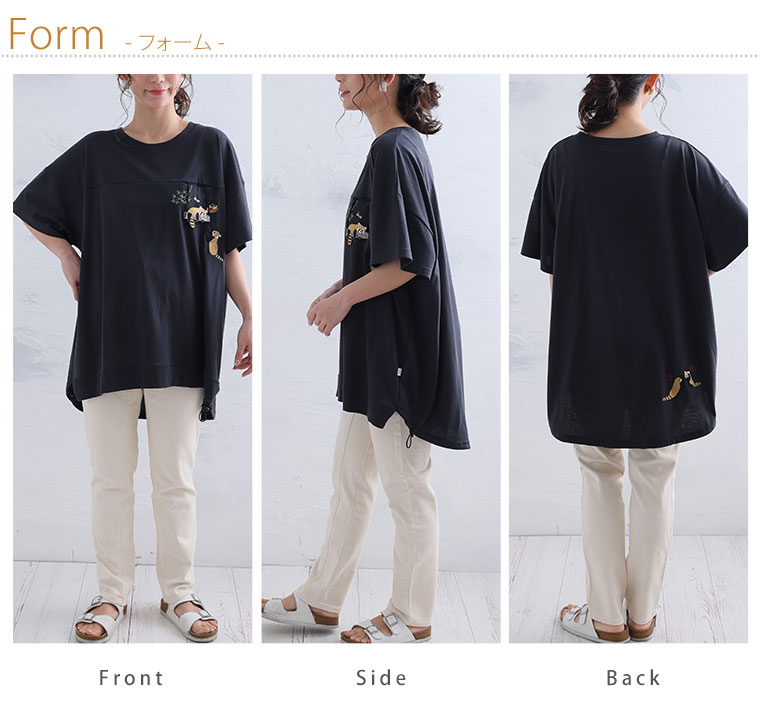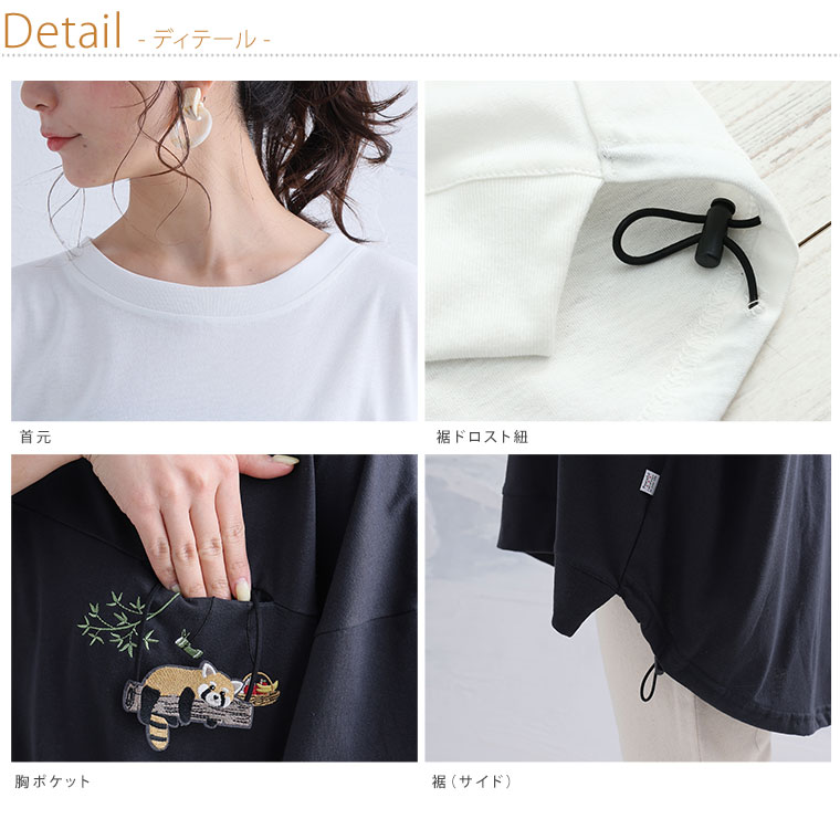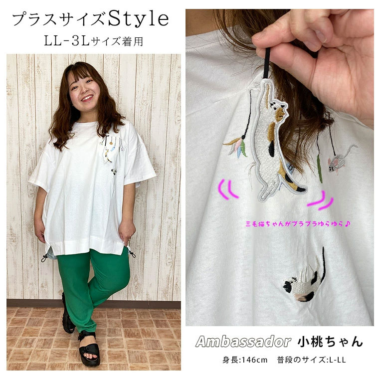 【限定!全品P5倍4/16 13:59まで】 大きいサイズ レディース トップス | ぶらぶら猫/レッサーパンダ Tシャツ _ Tシャツ カットソー LL 3L 4L 半袖 夏 夏物 夏服 夏用 ドロスト 体型カバー ねこ 刺しゅう ぽっちゃり ゆったり プラスサイズ かわいい [670168/670169]