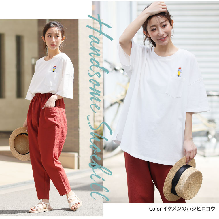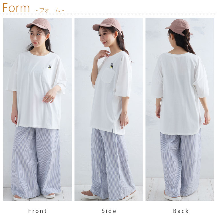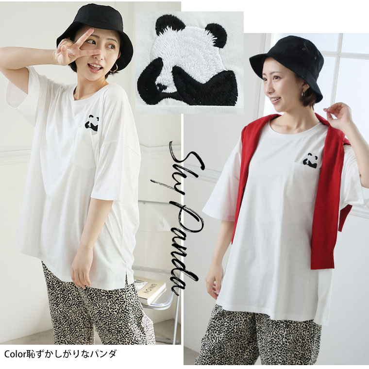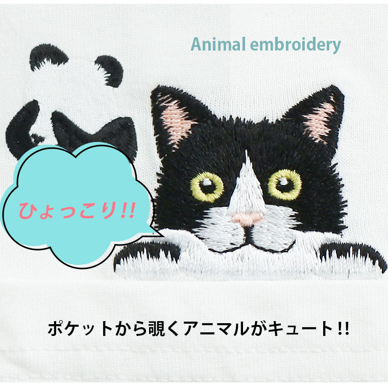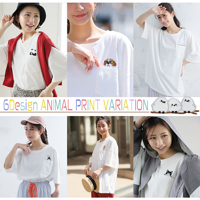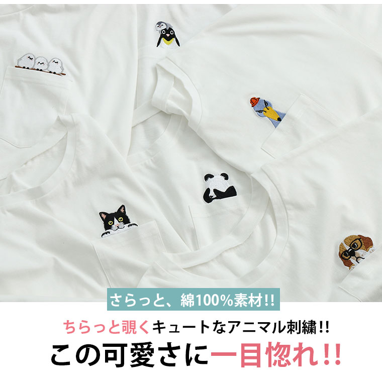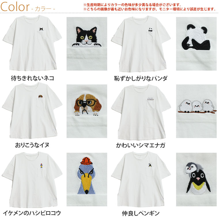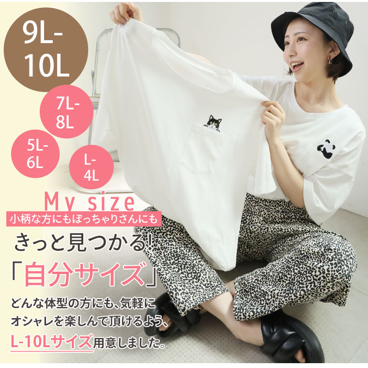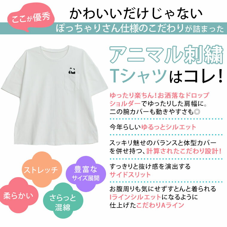 大きいサイズ レディース トップス | さらっと 綿100% ひょっこりアニマル刺繍 コットン ゆるTシャツ _ カットソー LL 3L 4L 5L 6L 7L 8L 9L 10L 半袖 五分袖 夏 夏物 夏服 夏用 ぽっちゃり ゆったり プラスサイズ かわいい カジュアル [432999]