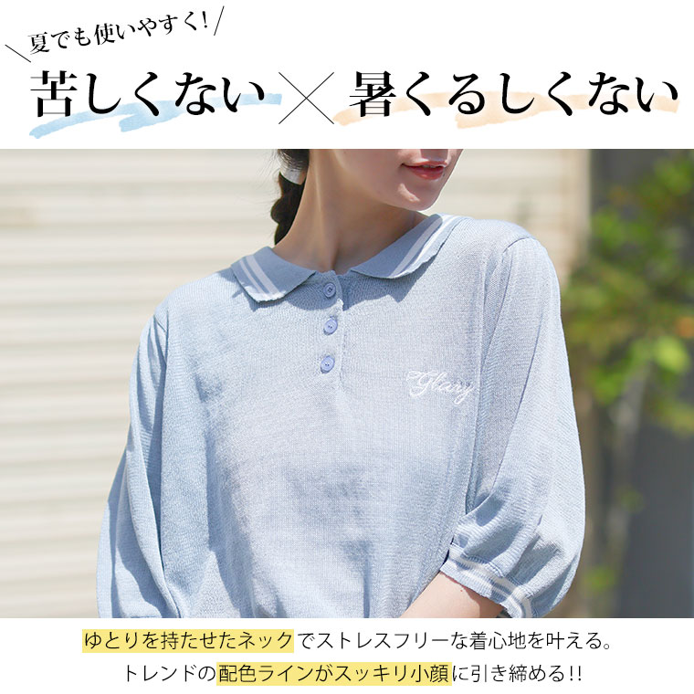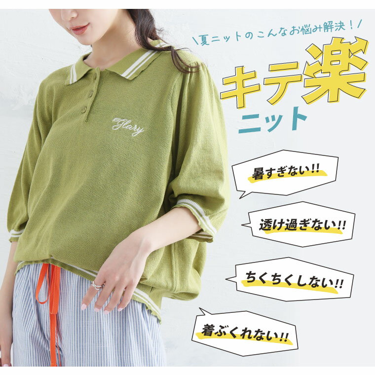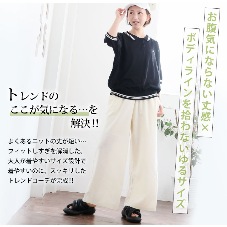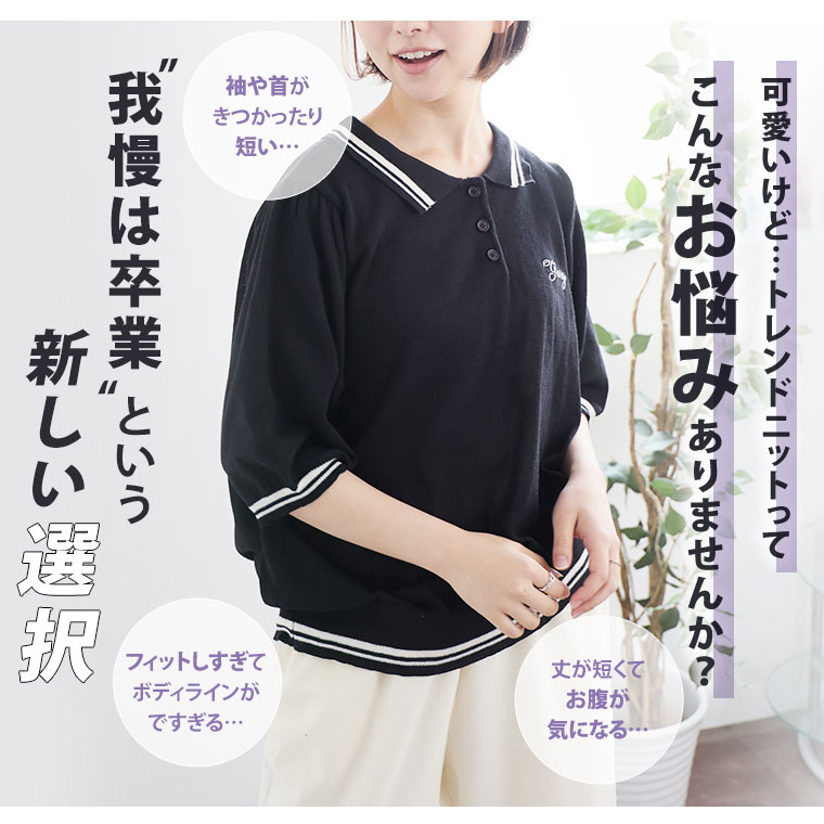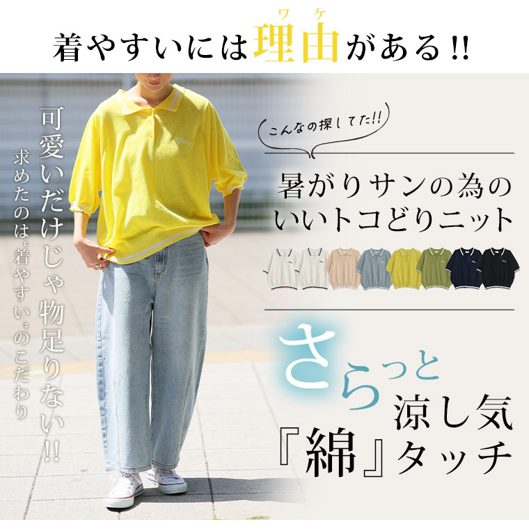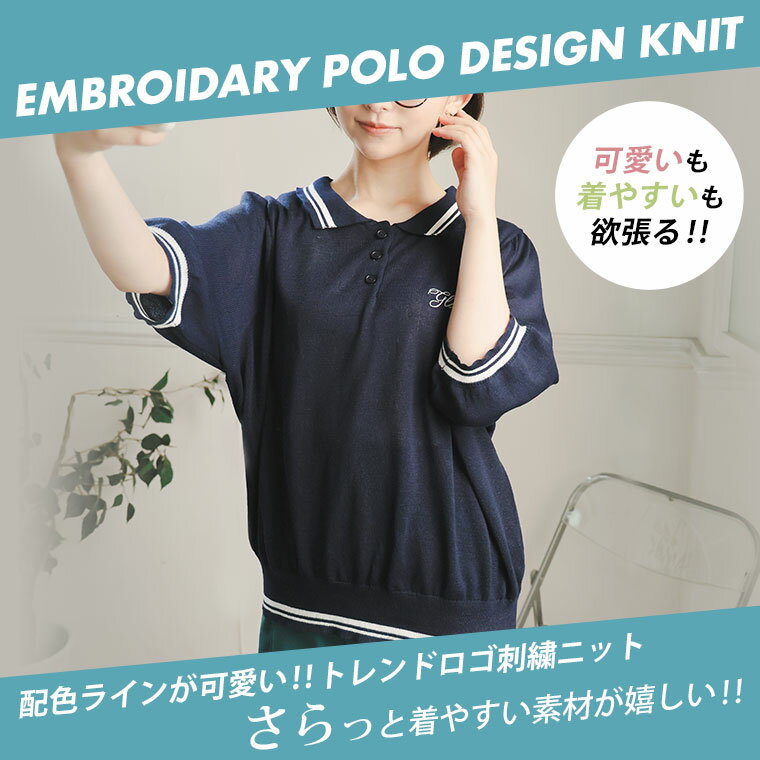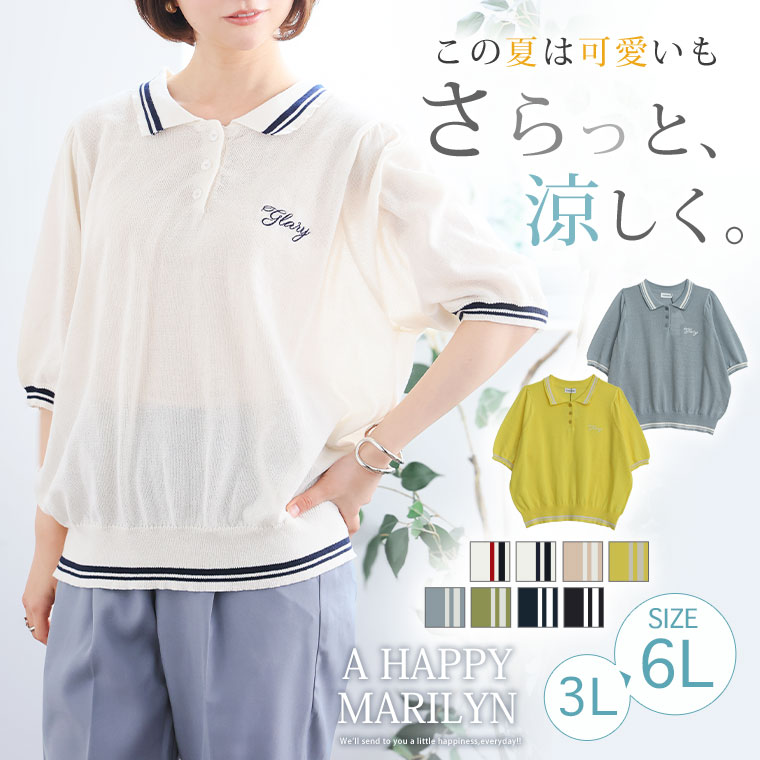 【限定!全品P5倍6/6 13:59まで】 大きいサイズ レディース ニット | さらっと可愛い! 着やすいを欲張る ロゴ刺繍 配色ライン 綿タッチポロデザイン ニット _ セーター 3L 4L 5L 6L 半袖 五分袖 夏 夏物 夏服 夏用 ぽっちゃり ゆったり プラスサイズ カジュアル [215315]