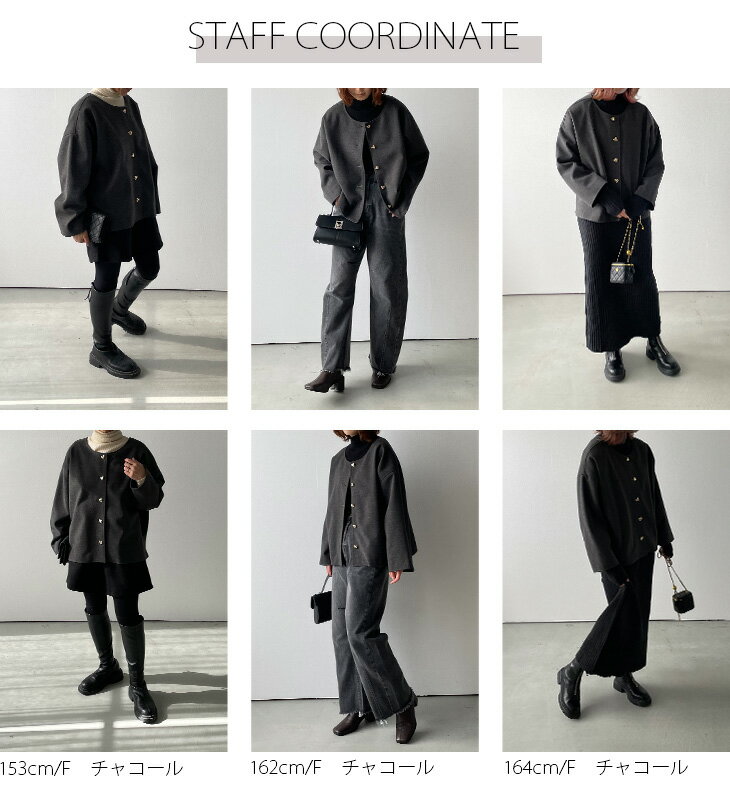 【半額クーポン対象】2way ハートボタン ショートコート ノーカラー ドロップショルダー アウター レディース 大人 フリーサイズ 2024秋冬新作 【aot303-812】【即納&予約:11月7日入荷予定順次発送】【送料無料】宅込