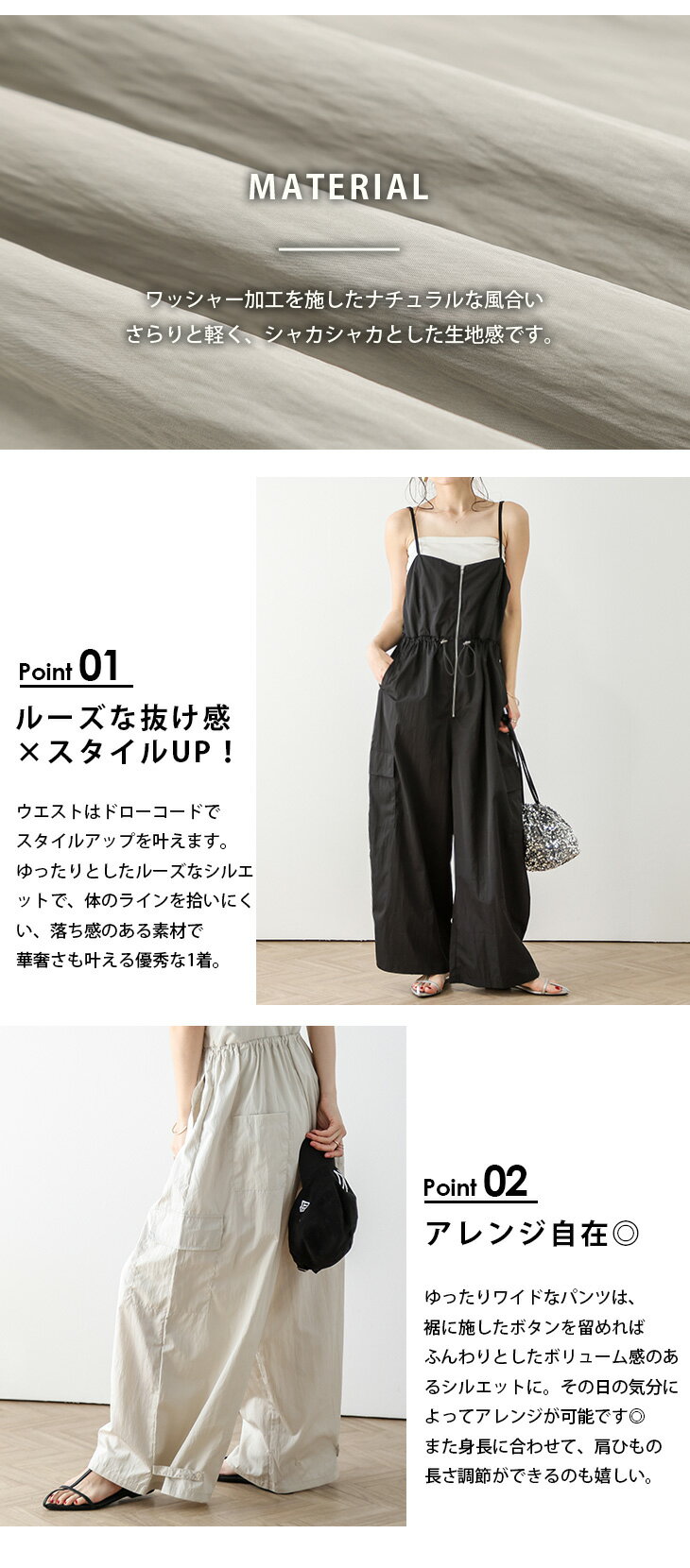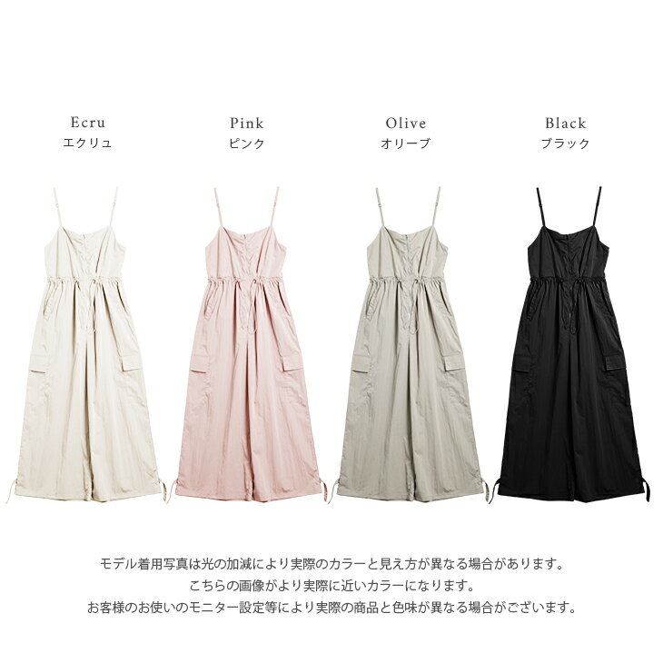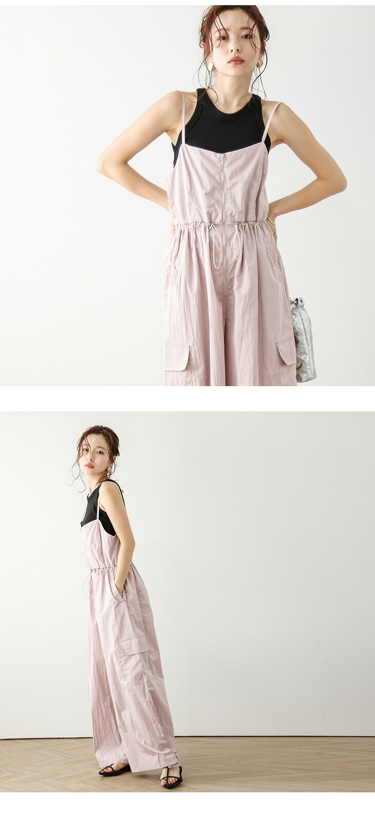 【半額クーポン対象】サロペット フロントZIP ミリタリー カーゴパンツ キャミサロペット オールインワン ドローコード レディース おしゃれ 2024春夏新作 【ass24-sr141】【予約販売:(1)6月27日/(2)7月4日入荷予定順次発送】【送料無料】ユ込3