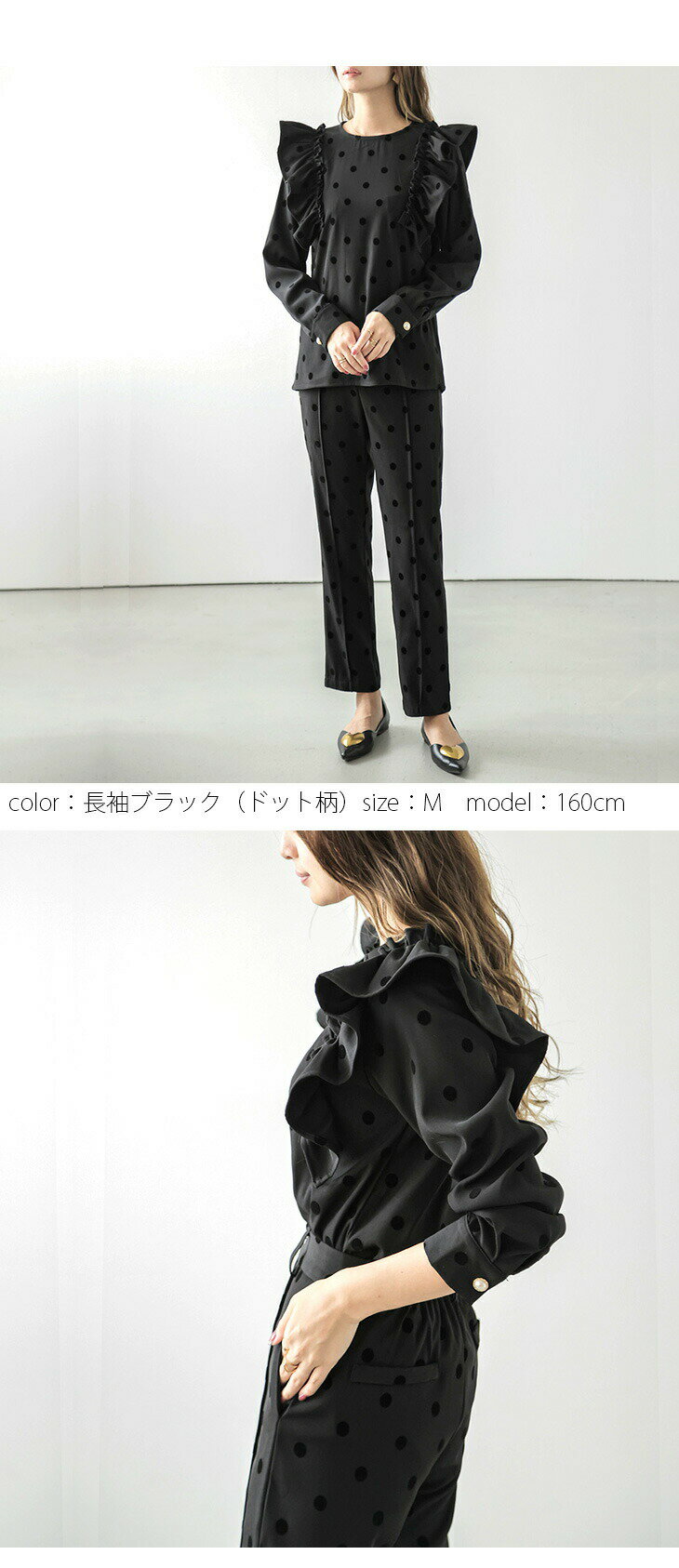 【奇跡の再販】【半額クーポン対象】フロッキードットセットアップ セットアイテム ドット柄 長袖 ボリュームフリル 異素材 美脚効果 レディース 女性らしい 大人可愛い 2024秋冬【lsse301-786】【即納:1-5営業日】【送料無料】メ込2