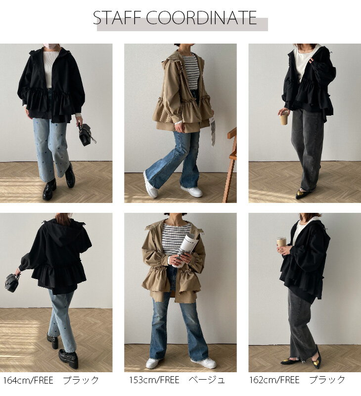 【奇跡の再販】フリルパーカー マウンテンパーカー UV対策 寒さ対策 アウター ボリューム袖 フード付き フェミニン ガーリー アウトドア レディース フリーサイズ 2024秋冬新作【aot408-40d】【予約販売:9月19日入荷予定順次発送】【送料無料】宅込