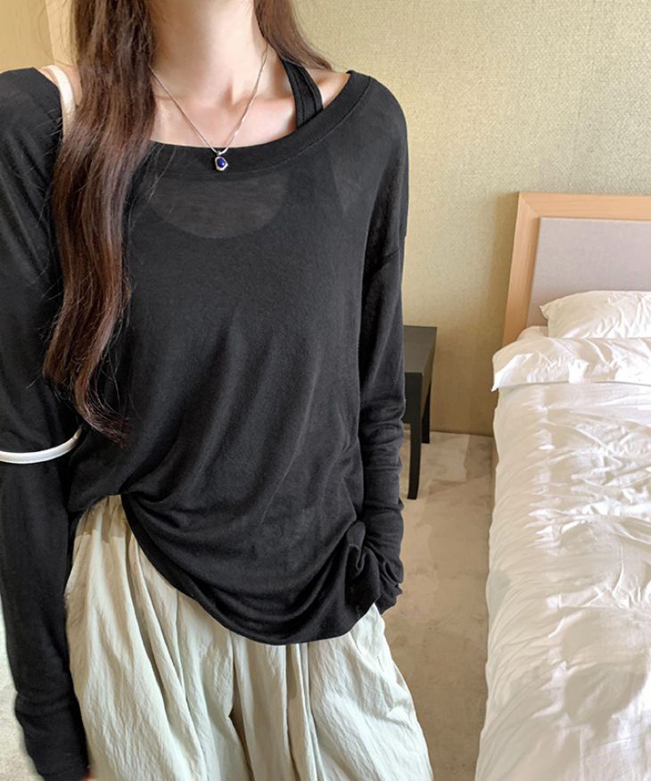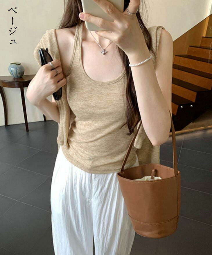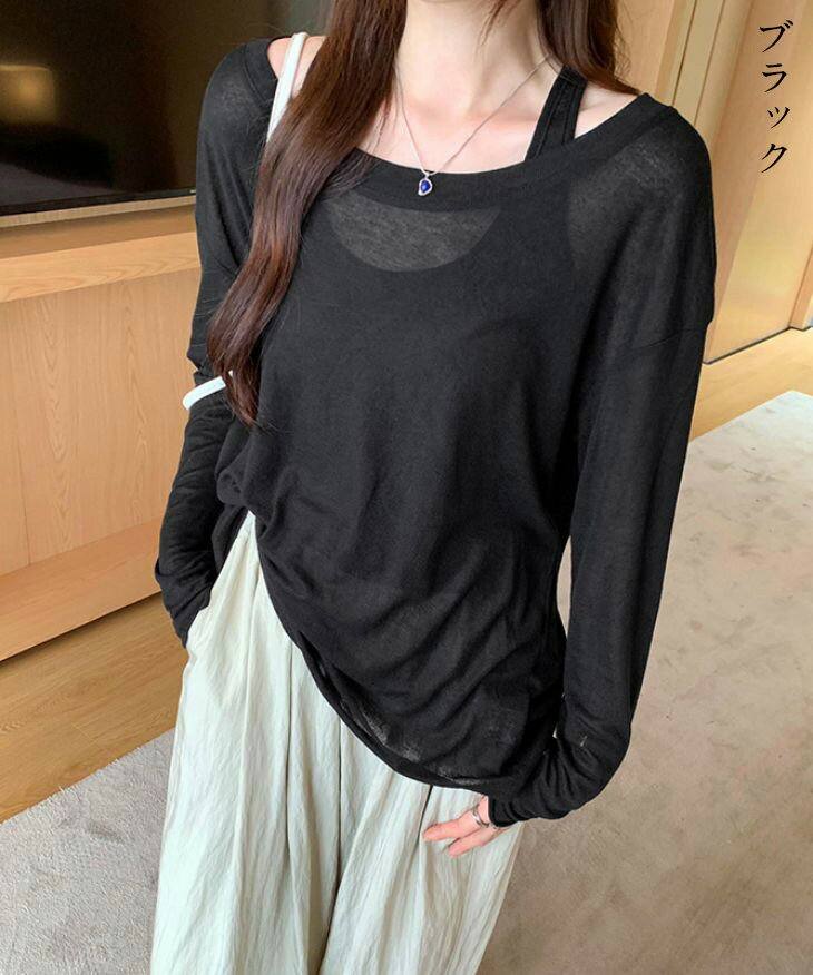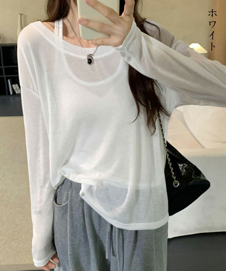 【半額クーポン対象】シアートップス タンクトップ 2点セット シアー透け感 長袖 カジュアル きれいめ 抜け感 楽ちん 春夏 おすすめ レディース オシャレ トレンド 人気 プチプラ 韓国ファッション【24aw-it107】【予約販売:15-20日】【送料無料】メ込2