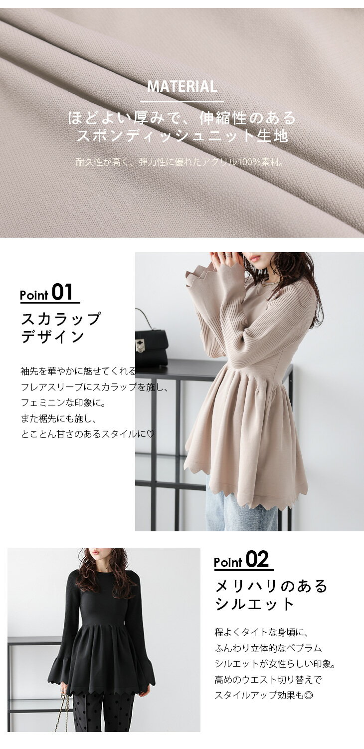 【半額クーポン対象】ニット スカラップ フレアスリーブ ペプラム タイト メリハリ フェミニン 華やか トップス レディース おすすめ おしゃれ フリーサイズ 2025春夏新作 【atpss25-1053】【予約販売:3月11日入荷予定順次発送】【送料無料】宅込