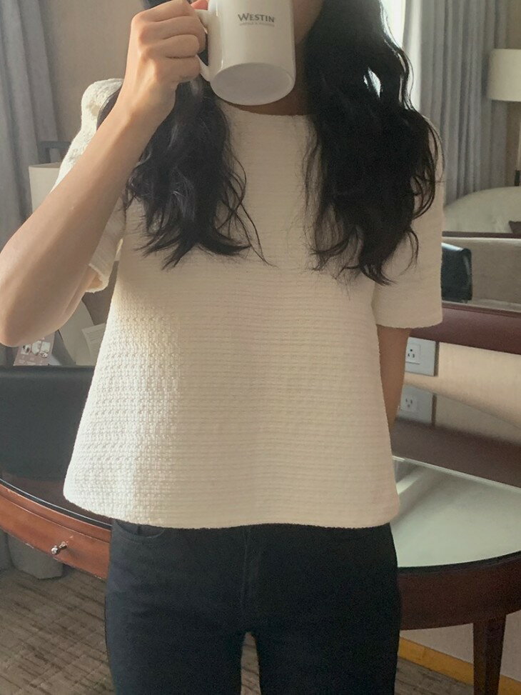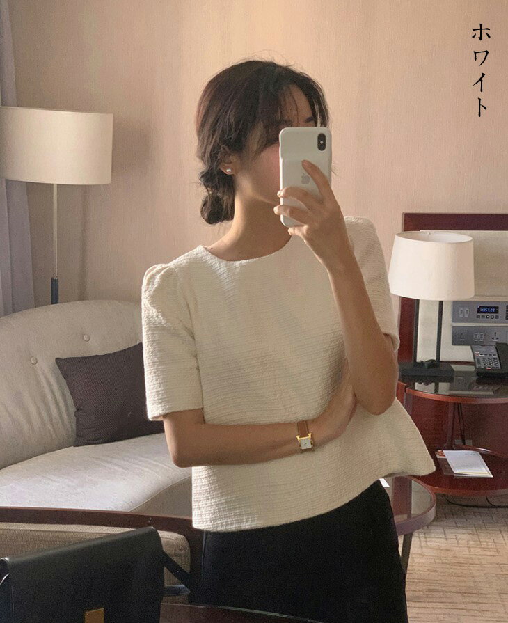 【半額クーポン対象】トップス プルオーバー ツイード調 半袖 キレイめ 上品 大人かわいい デート オフィスカジュアル おすすめ おしゃれ レディース トレンド 人気 プチプラ 韓国ファッション 2025春夏新作【3926-fx】【予約販売:15-20日】【送料無料】メ込2
