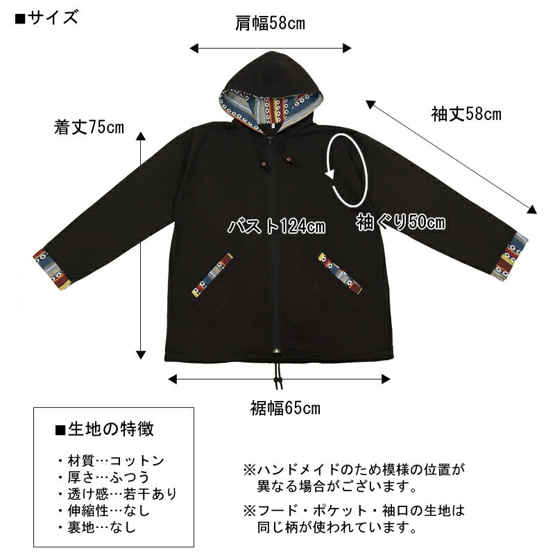 ゲリコットンジップアップパーカー【アジアンファッション/エスニックファッション/アジアン/エスニック/レディース/トップス/プルオーバー/カットソー/パーカー/フード/長袖/大きいサイズ/メンズ/ユニセックス/ゲリコットン】