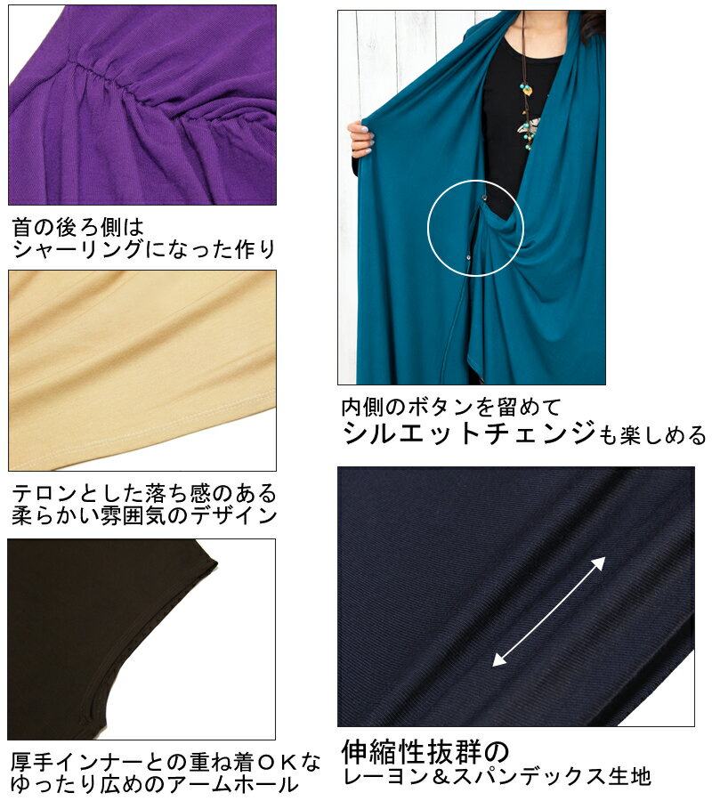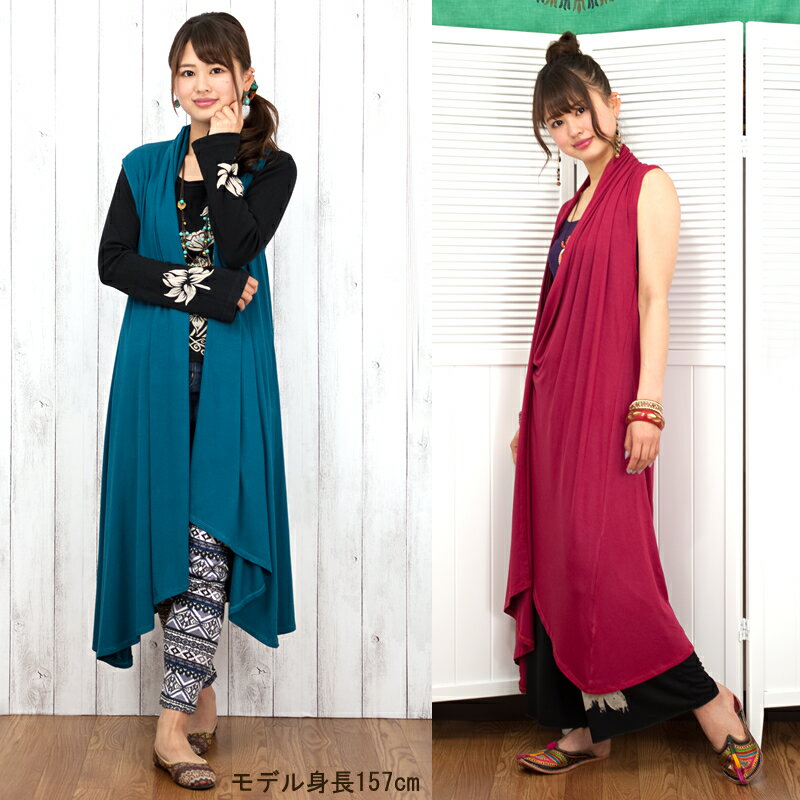 レーヨンスパンデックス2wayロングジレ【アジアンファッション/エスニックファッション/アジアン/エスニック/レディース/トップス/カーディガン/アウター/ベスト/ロング/ストレッチ】