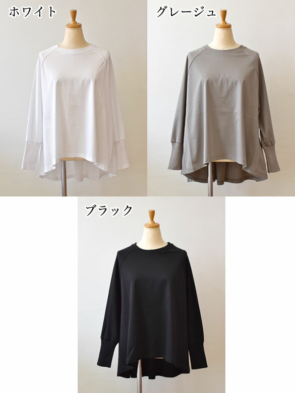 Maglia Plus(マリアプラス)シルケットコットン タックフレア ロングTシャツ(mp005)(143010)