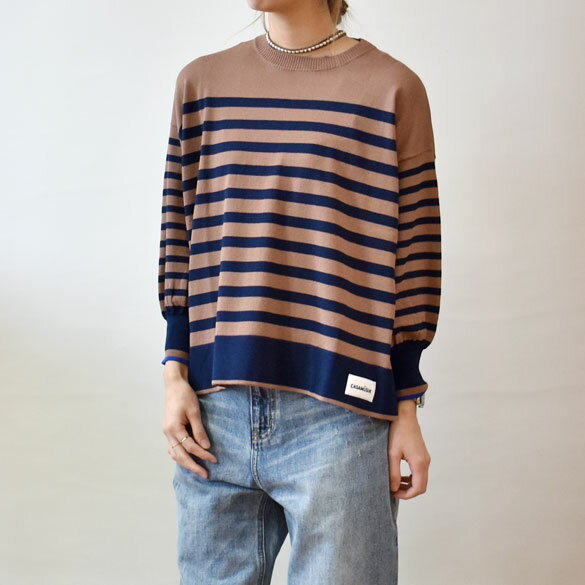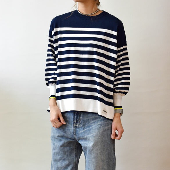 CASA MUSIK(カーサムジーク)袖口配色 ボーダーニット(at012)(833604)