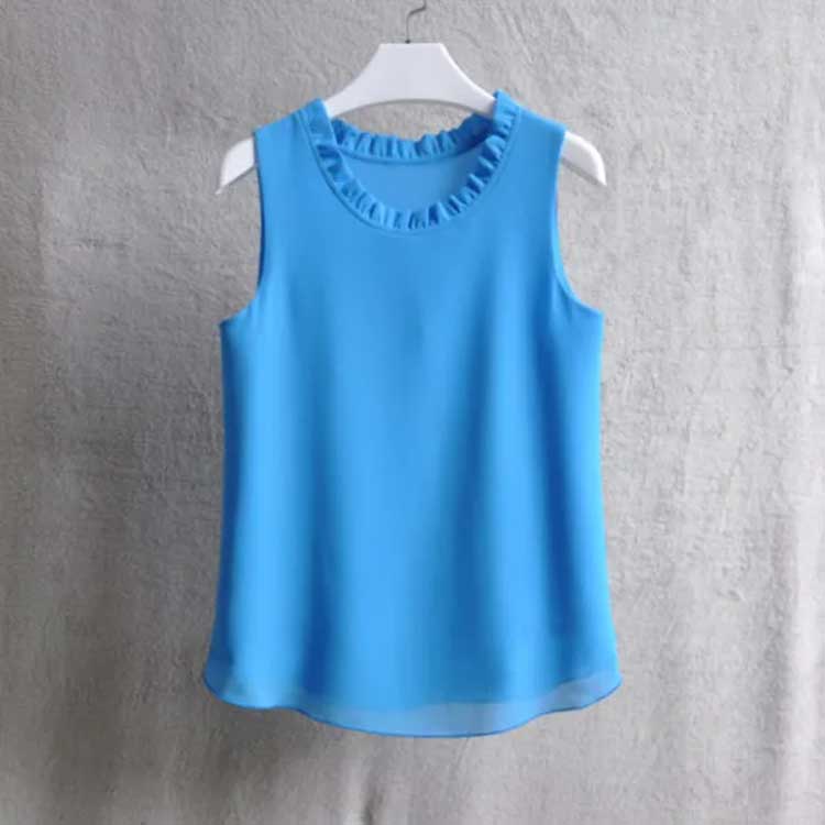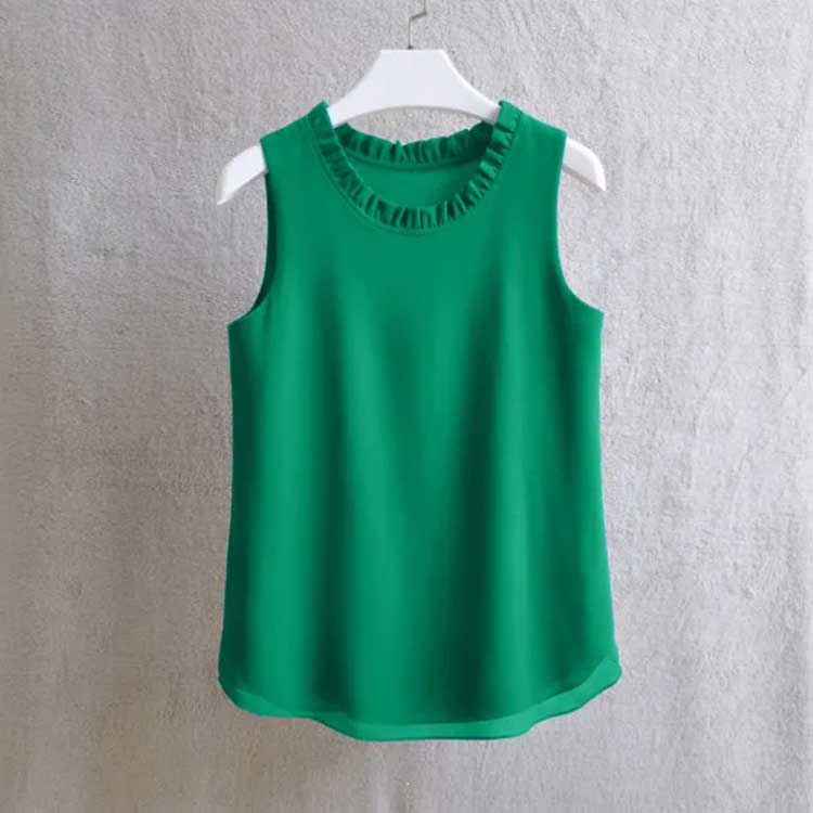 全20色 タンクトップ レディース シフォン ブラウス スカラップ襟 ノースリーブ トップス ノースリーブシャツ インナー フェミニン エレガント カジュアル 無地 20代 30代 40代 50代